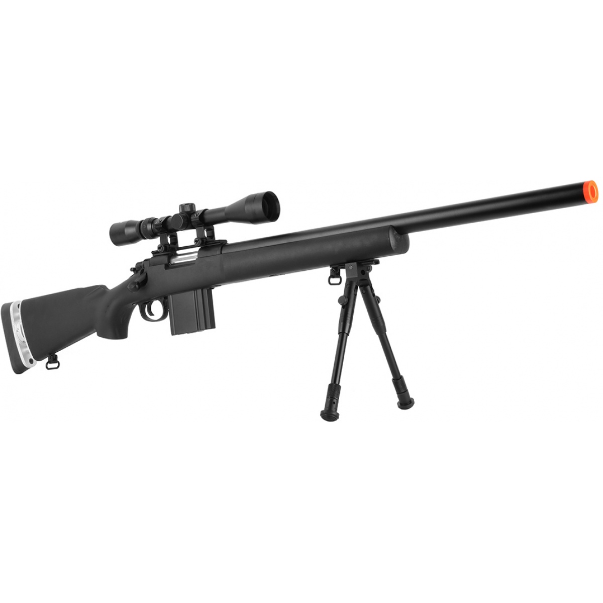 WellFire MB4404BAB Airsoft M24 Sniper Rifle w/ Scope & Bipod - BLACK