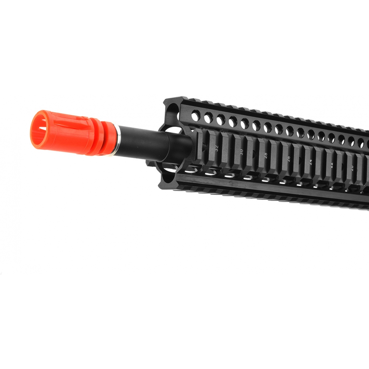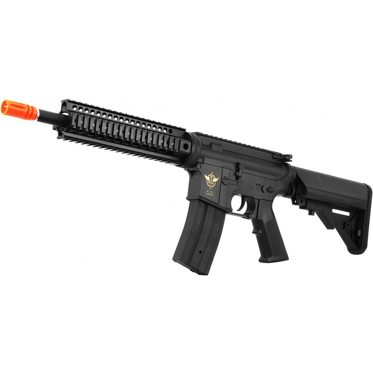 This new JG Works M4 9" RIS features a lightweight build without sacrificing durability, thanks to its lightweight polymer receivers and full metal rail system! However, its adjustable spring guide that sets this M4 airsoft rifle apart from other AEGs, allowing you to adjust the stiffness of the gearbox spring to modify muzzle velocity. The flat top rail also lets you mount flip-up front and rear sights. This JG Works airsoft M4 is also equipped with a full metal gearbox with 8mm bushings, making it a reliable AEG for high-torque upgrades. If you’re looking for lightweight airsoft gun field-ready when it comes to performance, the JG Workds M4 9" RIS is for you!