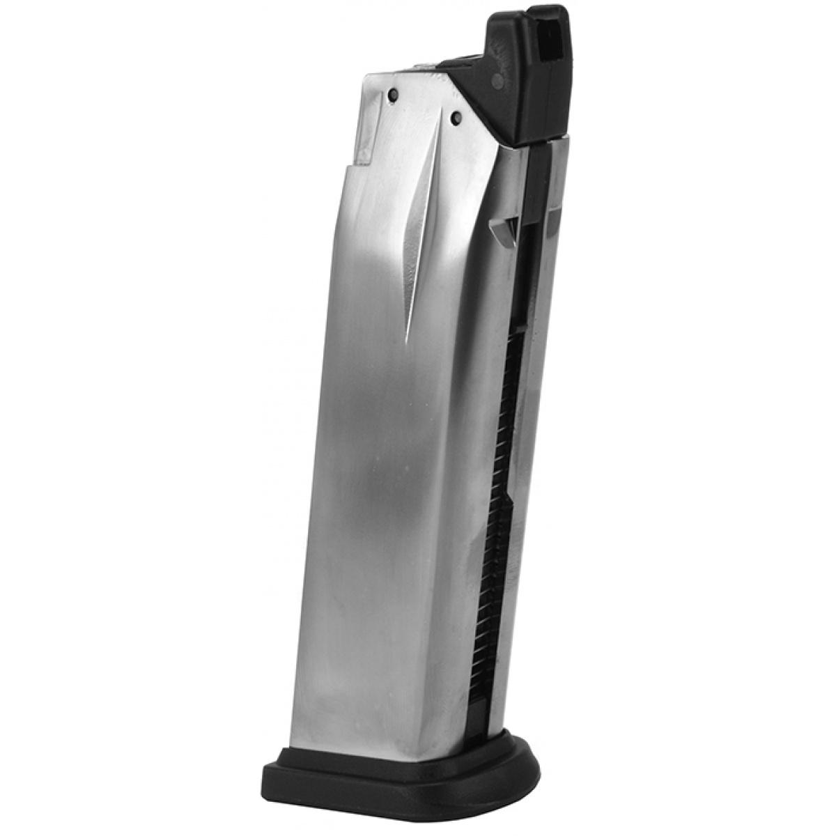 The WE Tech X-Tactical may not be the most powerful airsoft gun on the market, but it makes up for this with snappy recoil and an extremely fast cycling rate. This pistol is nearly identical to the Tokyo Marui gas blowback pistol in terms of quality and performance, however it costs less than half of the price! We Tech has installed a precision inner barrel and fully adjustable hop-up, providing this pistol with incredible range and accuracy! With 0.25g BB's, you can easily hit man sized targets at over one hundred feet! The disassembly of the X-Tactical gas blowback airsoft pistol is similar to the take-down of a P226, and is nearly identical to the field stripping of the real steel sidearm. Its larger double stack magazine capacity (storing up to twenty five rounds) is sure to give you an advantage over other single stack gas blowback pistols.