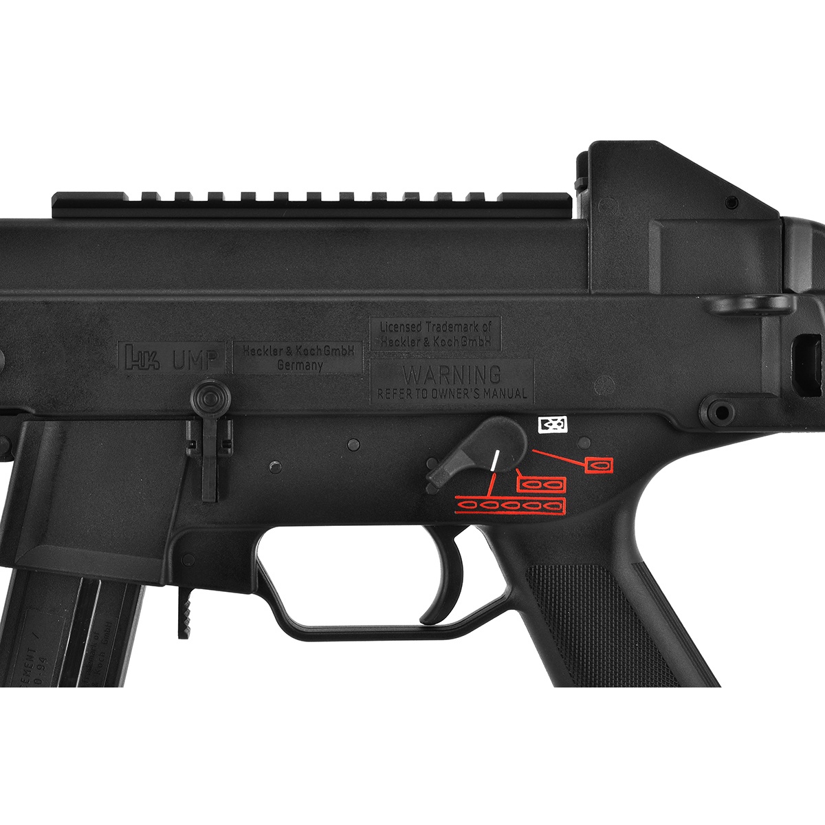 A realistic airsoft replica of one of the most notorious CQB rifles ever made, the Elite Force Umarex Licensed Heckler & Koch UMP 45 GBB CQB SMG Airsoft Submachine Gun is the embodiment of a rifle built for CQB. Made from lightweight polymer the H&K UMP 45 won't weigh you down in extended airsoft battles, but also doesn't sacrifice much needed durability. The HK UMP CQB GBB also features the full metal Picatinny Rail Integration System (RIS) which allows you to attach your favorite airsoft rifle accessories like lights, lasers, and scopes (red dots, magnifiers etc.) with a more than 18 inches of combined rail space. Additionally the gas blowback system takes the already realistic airsoft rifle to new levels. Each shot provides recoil and sends the bolt back to load the next BB round. One unique feature to the UMP 45 GBB, unlike most GBBs which only have semi & auto, the Elite Force Umarex UMP 45 also has a two round burst firing modality. Built from the ground up for CQB the Umarex UMP 45 has a folding stock that sits comfortably in anyone's shoulder, and reduces the rifles overall length by almost 10 inches. Making it extremely maneuverable it tight spaces that have become more common in airsoft battles. Overall this rifle is perfect for airsofters of every experience level.