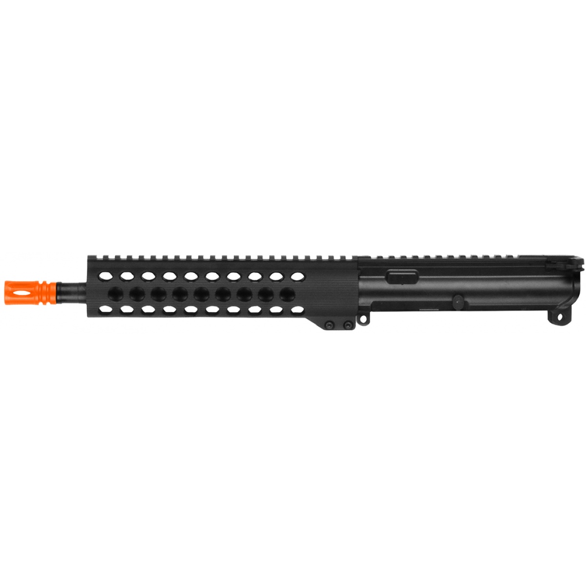 Fully licensed by Troy Industries, this 9" Polymer Upper Receiver by Golden Eagle features a Troy Alpha Rail forend. This modular rail system is capable of accepting a variety of accessories, from foregrips to laser and flashlights. The short barrel makes this receiver an ideal choice for building a close quarters CQB rifle, and the polymer build means the rifle will be very lightweight. A two-piece polymer hop-up unit improves the accuracy of the platform and is directly compatible with all Golden Eagle polymer lower receivers.