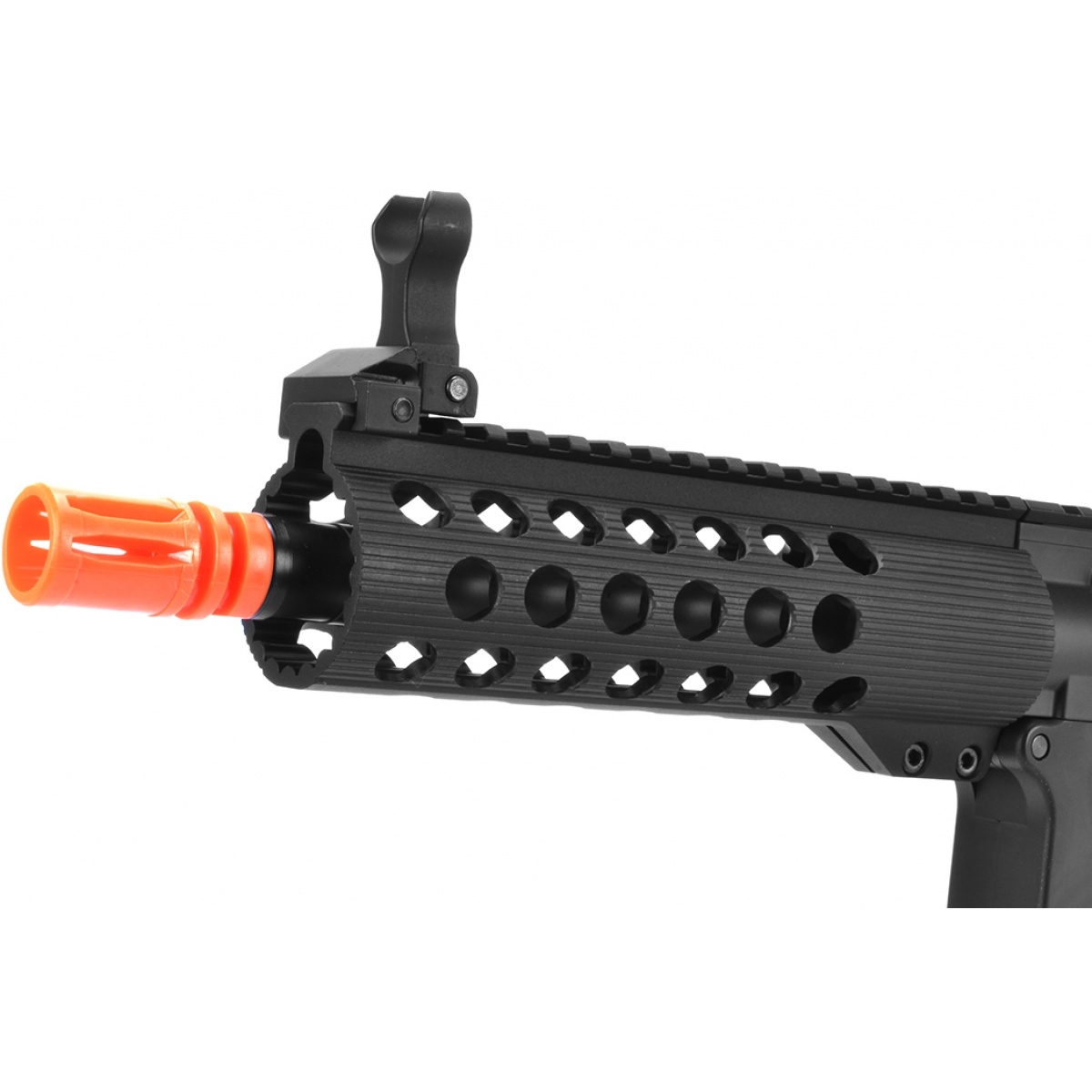 Ammo type: Seamless 0.20g or heavier (0.23g, 0.25g, 0.26g, 0.28g, etc) BBs. For maximum performance and accuracy, Airsoft Megastore recommends GoldenBall ProSlick BBs which carry perfect spherical consistency and density, available at Airsoft Megastore for the lowest price on the market, guaranteed.