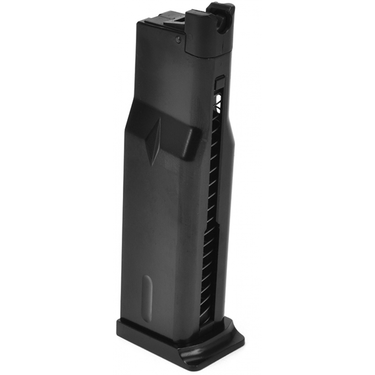 Included in the standard package is a 120mm inner barrel extension, which can be attached via an 8mm positive thread. When attached, this inner barrel extension will improve shot consistency and also provide a marginal boost to to FPS and range. The included sixteen (16) round magazine is made entirely metal, and is slightly weighted to help improve the realism of this replica airsoft pistol. Unlike many other airsoft sidearms, the Makarov doesn't have a button-style magazine release, which allows the shooter to acquire a high, firm grip on the handgun without inadvertently pressing the mag release. Instead, the magazine release on the Makarov is on the bottom of the pistol grip, holding the magazine in the mag well from the bottom.