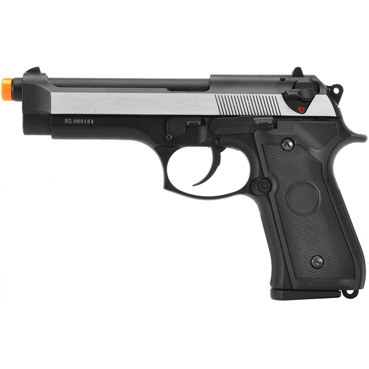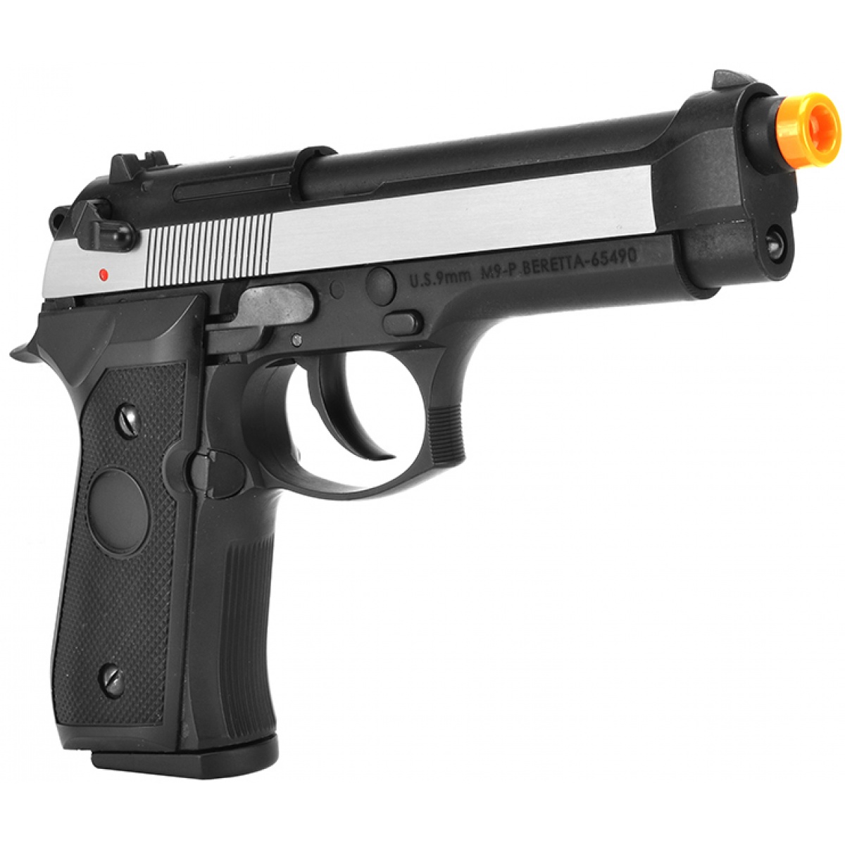 The quality of construction that went into this airsoft M9 is outstanding, and this pistol is a perfect balance of realism, durability, and functionality. From the gas blowback action to the laser engraved markings on the slide, this replica looks and operates just like the real steel M9. To further improve the realism of this airsoft pistol, Bell included a realistic trigger spring, so right down to the trigger pull this gun as realistic as they come. Serrations on the slide provide a reliable non-slip gripping surface to make cycling the action easy, regardless of operating conditions. Fixed iron sights make sight picture acquisition and target tracking quick and easy. The addition of white dot sight markings on the front sight post makes proper sight picture and sight alignment second nature, making it easy to focus on the front sight so you can deliver fast accurate shots downrange when it matters most. The KSC System 7 Green Gas system makes for a crisp and clean blowback that is very efficient and very reliable. The gas system works in conjunction with the internal components of this handgun to generate a muzzle velocity that tops out around 300 FPS (w/ 0.20g BBs), making the Bell U.S. Army Parabellum M9 is ideal for use on nearly all airsoft fields.