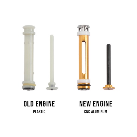 • Upgraded CNC aluminum spring guide rod and piston which provides reliability and functionality compared to the old plastic construction design