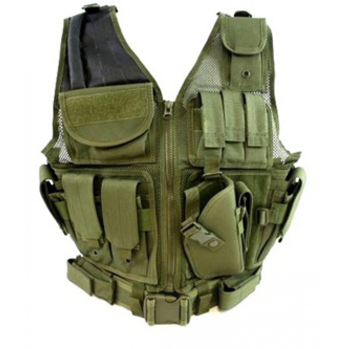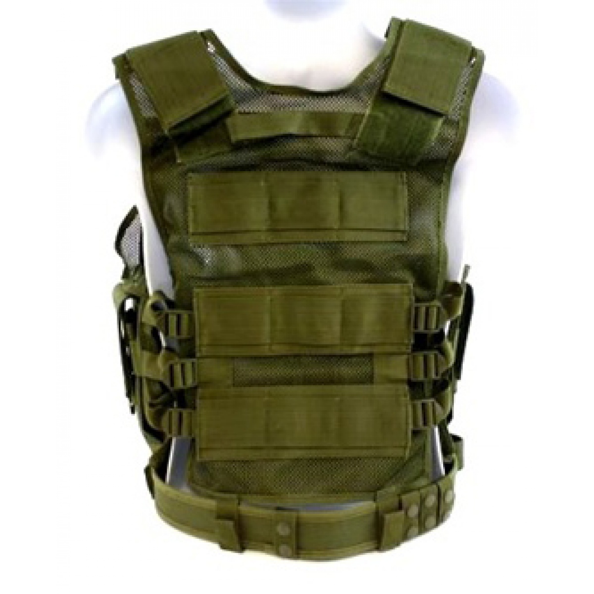 AMA Airsoft Cross-Draw Military Vest w/ Tactical Belt - OD GREEN
