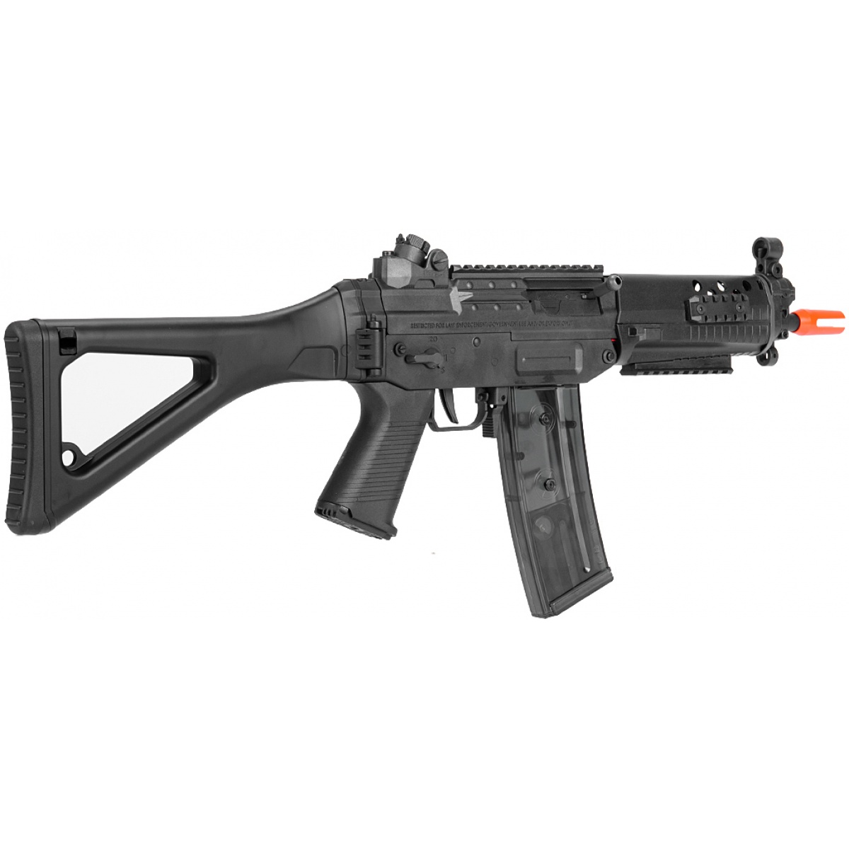 Looking to run a lightweight platform that delivers peak performance? The ICS SG 552 Commando is the perfect compact airsoft gun for close quarters combat. This SG 552 Airsoft AEG Rifle, which is a replica of the shortened version of the SG 551, falls into ICS’ sportline series of AEGs. This makes it one of the most high performing airsoft guns on the market with lightweight furniture tailored for high-speed players. The rotating diopter rear sight, similar in design to MP5-style AEGs, adjusts into four different apertures for improved target acquisition. Though this rifle features a lightweight polymer build (receiver, stock, handguard, motor grip), the internals are completely metal. A reinforced Version 3 gearbox and M100 spring combined ensures that rounds tag targets at up to 350 FPS (w/ 0.20g BBs), making it legal in most indoor fields. Additionally, this airsoft SG 552 AEG also comes with stainless steel bushings and a precision 6.04mm inner barrel. This SG 552 Commando AEG, equipped with a foldable rear skeleton stock, comes with two 470-round magazines to give you ample ammo capacity for any situation.