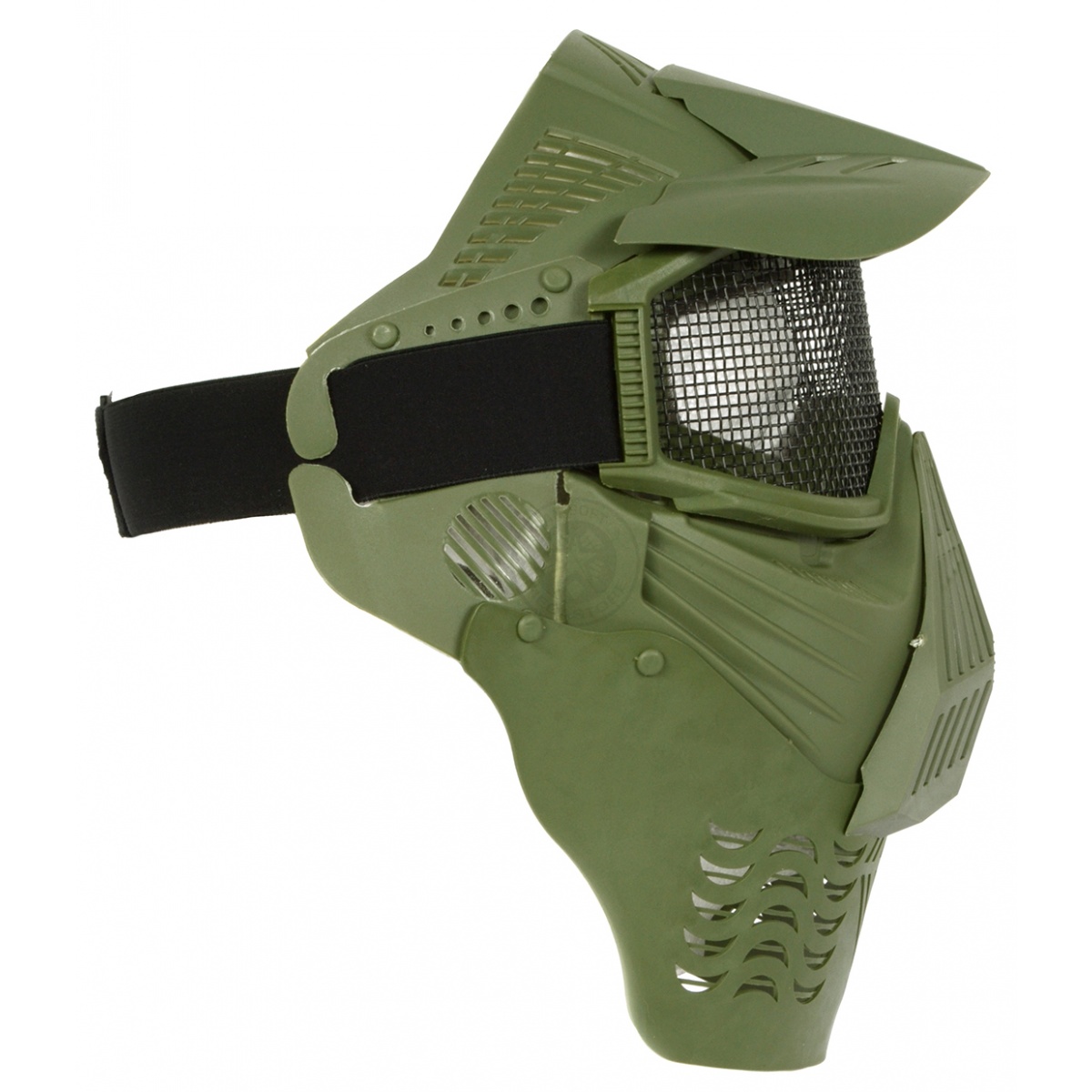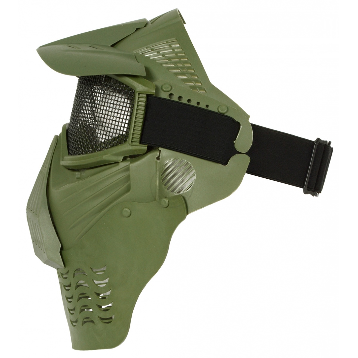 Our take: The G-Force KING Ultra Elite tactical face mask with visor and extended neck protection is one of the newest and most advanced face masks to hit the airsoft market yet. This high grade, comprehensive face, eye, and neck protection mask is crafted from high grade ABS composite and laced with heavy-duty protective mesh for the ultimate protection from stray BBs flying towards the face, eyes, and/or neck. OD Green color is great for woodland play.