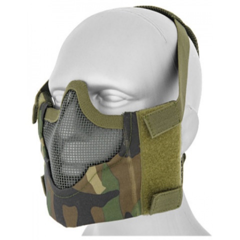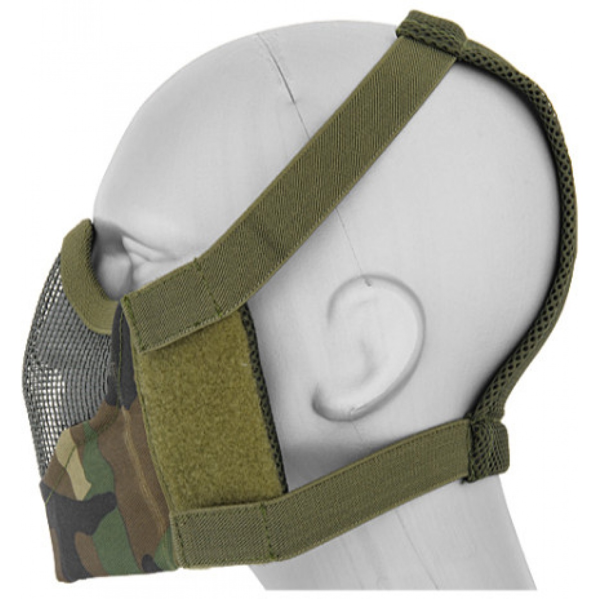 Black Bear Airsoft V8 Mesh Nylon Half Face Mask - WOODLAND CAMO