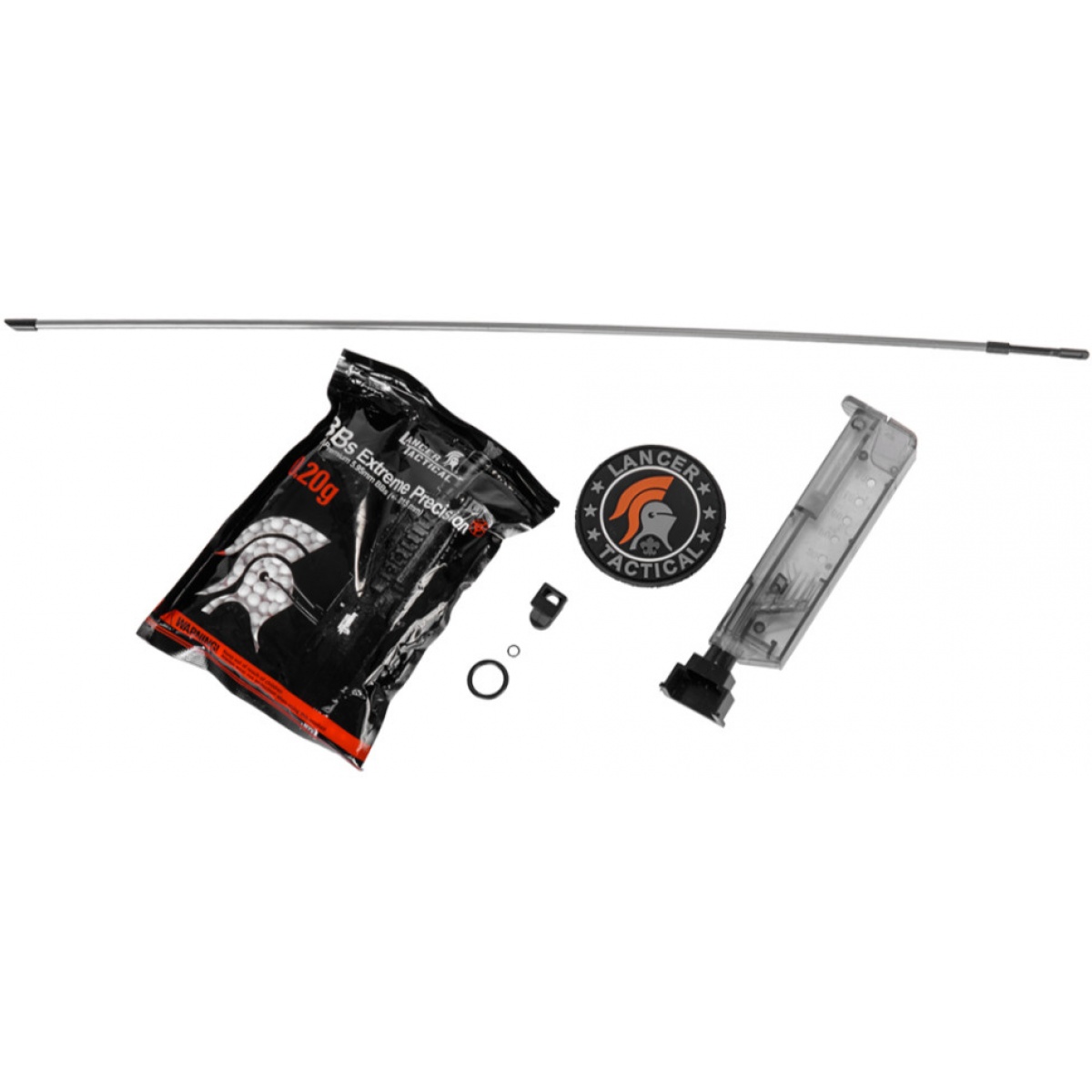 Ammo type: Seamless 0.20g or heavier (0.23g, 0.25g, 0.26g, 0.28g, etc) BBs. For maximum performance and accuracy, Airsoft Megastore recommends GoldenBall ProSlick BBs which carry perfect spherical consistency and density, available at Airsoft Megastore for the lowest price on the market, guaranteed.