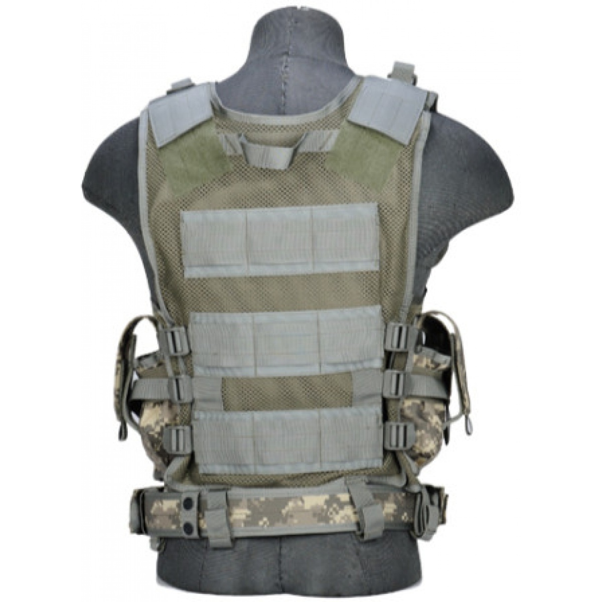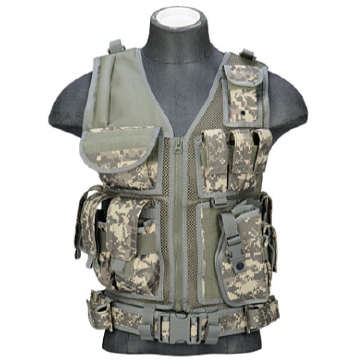 Lancer Tactical Airsoft Cross Draw Combat Vest w/ Holster - ACU