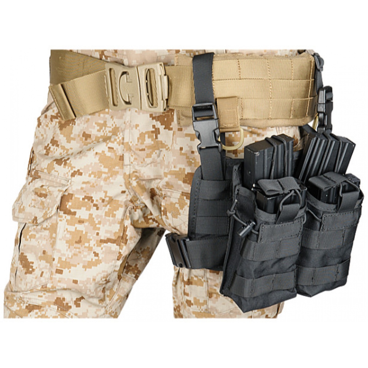 Lancer Tactical Airsoft Tactical 2x2 MOLLE Bungee Leg Rig - BLACK