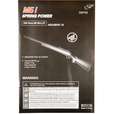 | Muzzle Velocity | 380 - 400 FPS with 0.20g BBs |