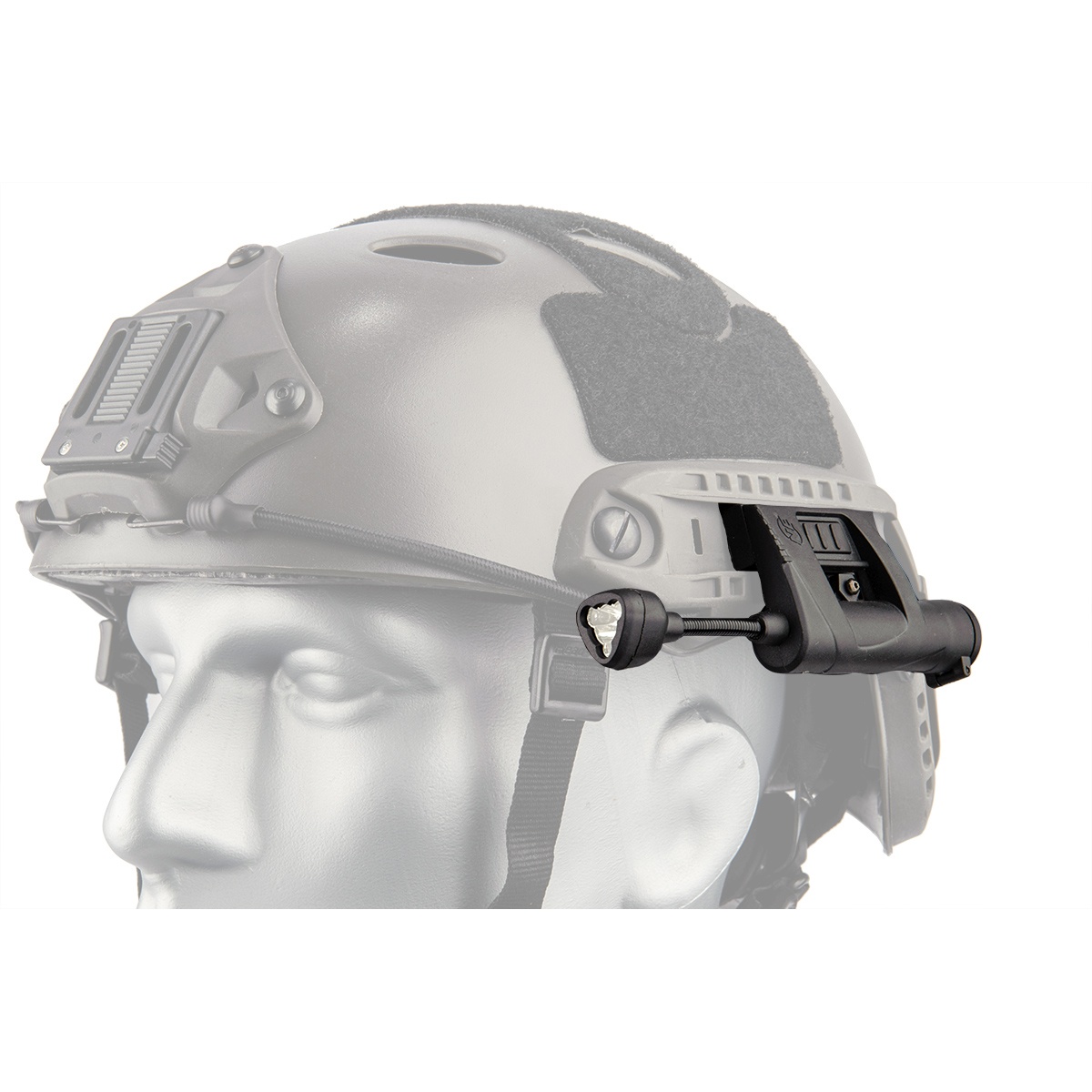 Made with a 360 degree mount, the Helmet Light from Night Evolution helps for low light situations and it attaches onto MICH type helmets.