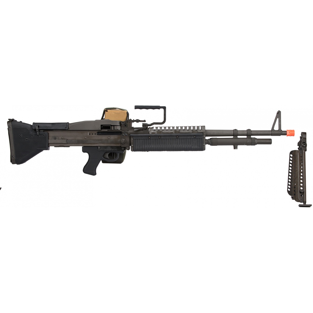 In terms of performance, the M60VN has a rate of fire between 700 - 1200 RPM and chronoed in at 331- 350 FPS. The power performance performs well for an AEG under 0.5 joules. Besides using the bipod, the upper carrying handle and foldable shoulder rest provides the much needed support for stability while shooting from a standing position. Fire away and get some!