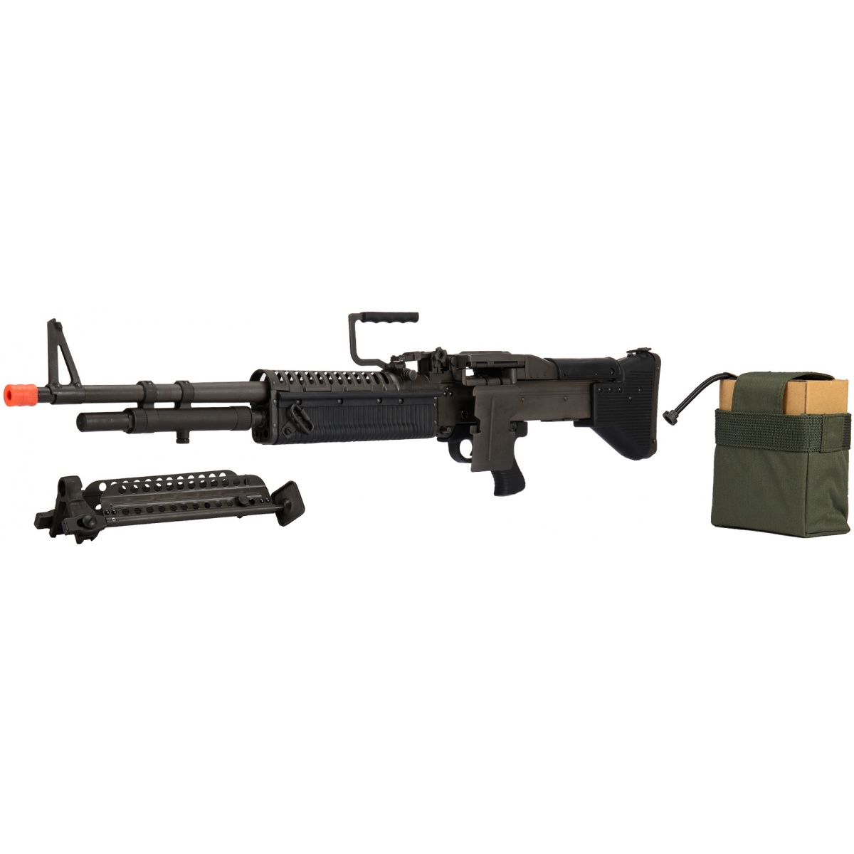 Back in the late 1950's, the U.S. Army adopted the T161E3 as the M60 "Pig" Light Machine Gun. It was developed as a squad automatic weapon also known as "SAW" during the Vietnam War. In the entertainment industry this model LMG was used in movies such as Full Metal Jacket, Three Kings, Rambo and much more. Due to its popularity over the course of years, the airsoft world has shifted this firearm into a monster that holds 1300 rounds of BBs!