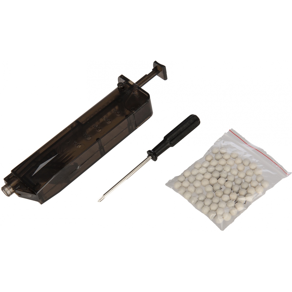 Ammo type Seamless 0.20g or heavier (0.23g, 0.25g, 0.26g, 0.28g, etc) BBs. For maximum performance and accuracy, Airsoft Megastore recommends GoldenBall ProSlick BBs which carry perfect spherical consistency and density, available at Airsoft Megastore for the lowest price on the market, guaranteed.