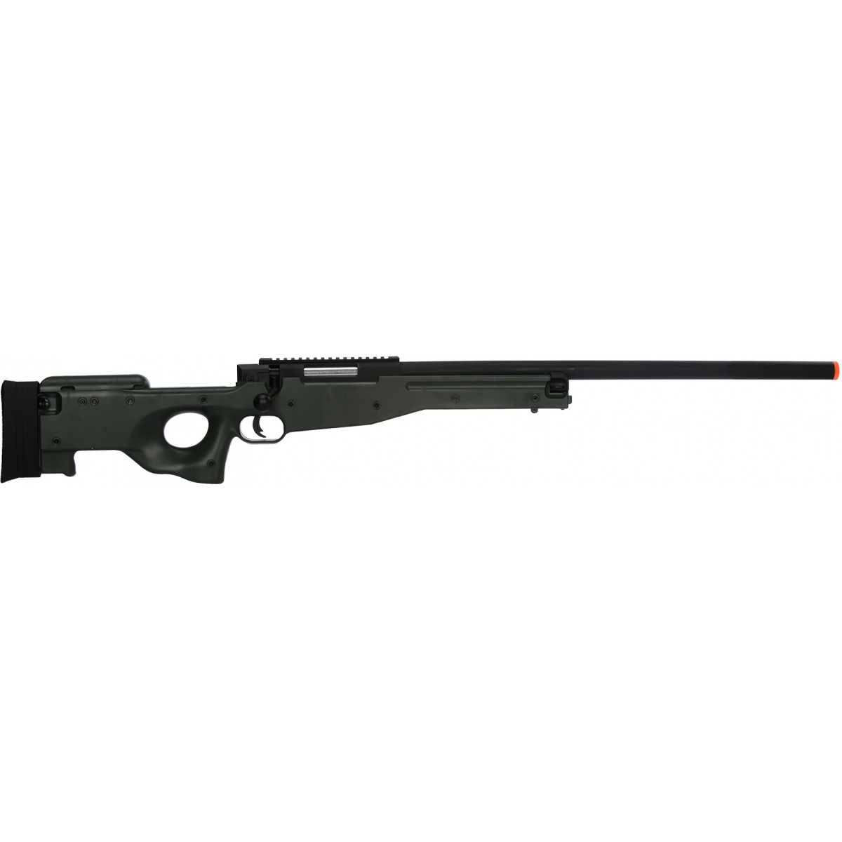 The UK Arms L96 Airsoft Sniper Rifle provides a light weight ABS plastic body that's reinforced for a long life span. Along with the work frame, the full metal bolt, trigger assembly, and combined with a durable polymer stock to keeps the weight down while maximizing reliability. This model airsoft sniper rifle stays true to its original scale and it even comes with a top rail for optic attachments to prove it. The body is nicely finished and most importantly, it shoots extremely hard and extremely accurately. The adjustable hop up can be found on the magazine release that requires an allen key. Additional features includes a small bag of BBs and a speed loader to add more value. The UK Arms L96 Sniper Rifle is available at Airsoft Megastore at the guaranteed lowest price, which means it's an affordable, yet high-performance bolt action sniper that's definitely worth adding to your arsenal.
