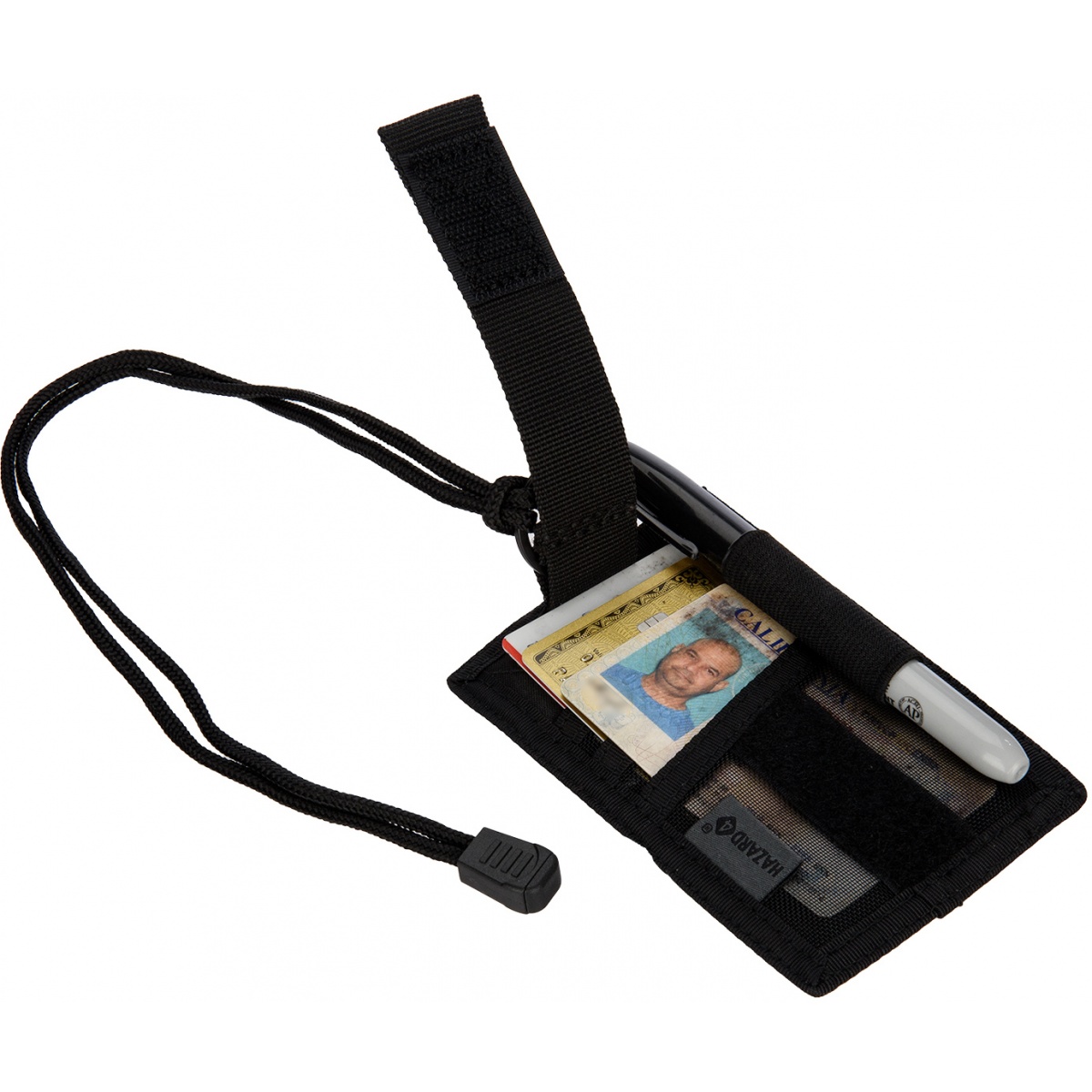 Is your surface panel filled with morale patches and you need more room for more? Well Hazard 4 has you covered with a hook and loop area that hold most common patch sizes. Showcase your favorite patch and hook it on your neck with the official Patch Bade/Organizer. The matte black split ring can secure for keys, lanyards, and carabiners to accommodate your item carrying needs. This patch badge can be very useful for men and women in uniforms that need identification to be fully showcased. Also during special occasions regarding events. The pen loop can hold your trusty writing material during press conferences for journalist, etc. The interior three micro-mesh identification sleeves can carry two credit, debit or identification cards in each pocket. On top of it all, the 1" inch belt-strap can fit onto your MOLLE standard gear. Included with this patch badge is a lanyard and a split ring to provide you with all the organizing you need.