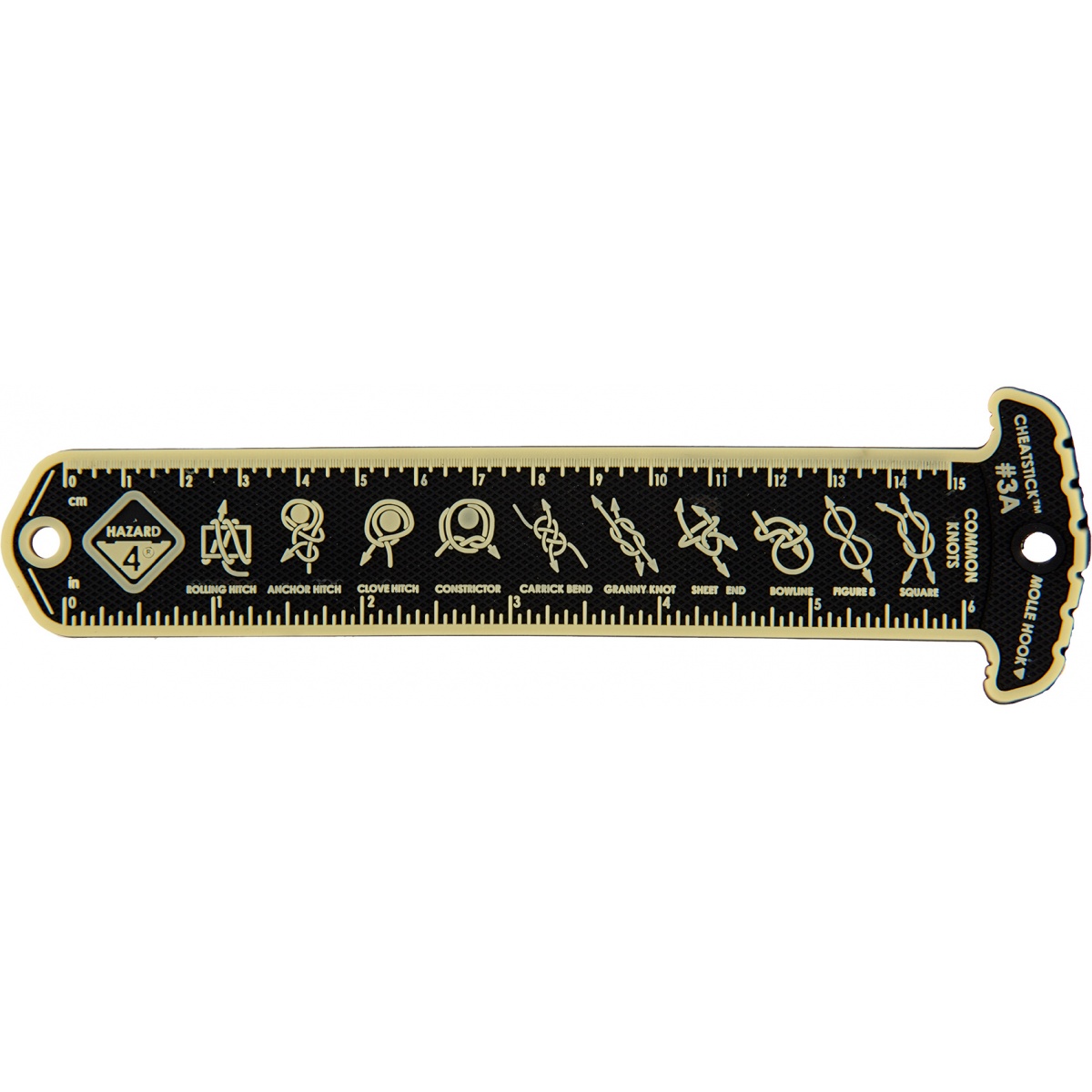 Turn off the lights and illuminate your tactical Cheatstick around your tactical bags exclusively from Hazard 4 gear. Knowledge is power, make sure you have important information you need in your squad using this strong and durable gear. This ruler provides a quick reference to various knots in a convenient and easy to read patch. Hazard 4 thinks of convenience by allowing your ruler to fit into MOLLE loops and anchors with a hook handle, quick to use while taking very little space. Made with TPR Rubber 3-D Injection-Moulded material, this light weight and durable layer of construction is water proof, tear resistant and has a bunch of utility. There's also lanyard holes that can be preloaded with an aluminum carabiner. This Cheatstick is also compatible with most admin panels and pocket slots for Hazard 4 bags. If you need a clip binder in the lower hole this ruler creates a lash-point onto compatible MOLLE gear. This reference Cheatstick can be utilized to measure lengths of objects on and off the field. Finally, this ruler can create a collection 'fans' by clipping multiple cards together. Reference your cards or patches amongst your peers with this exclusive item from Hazard 4.