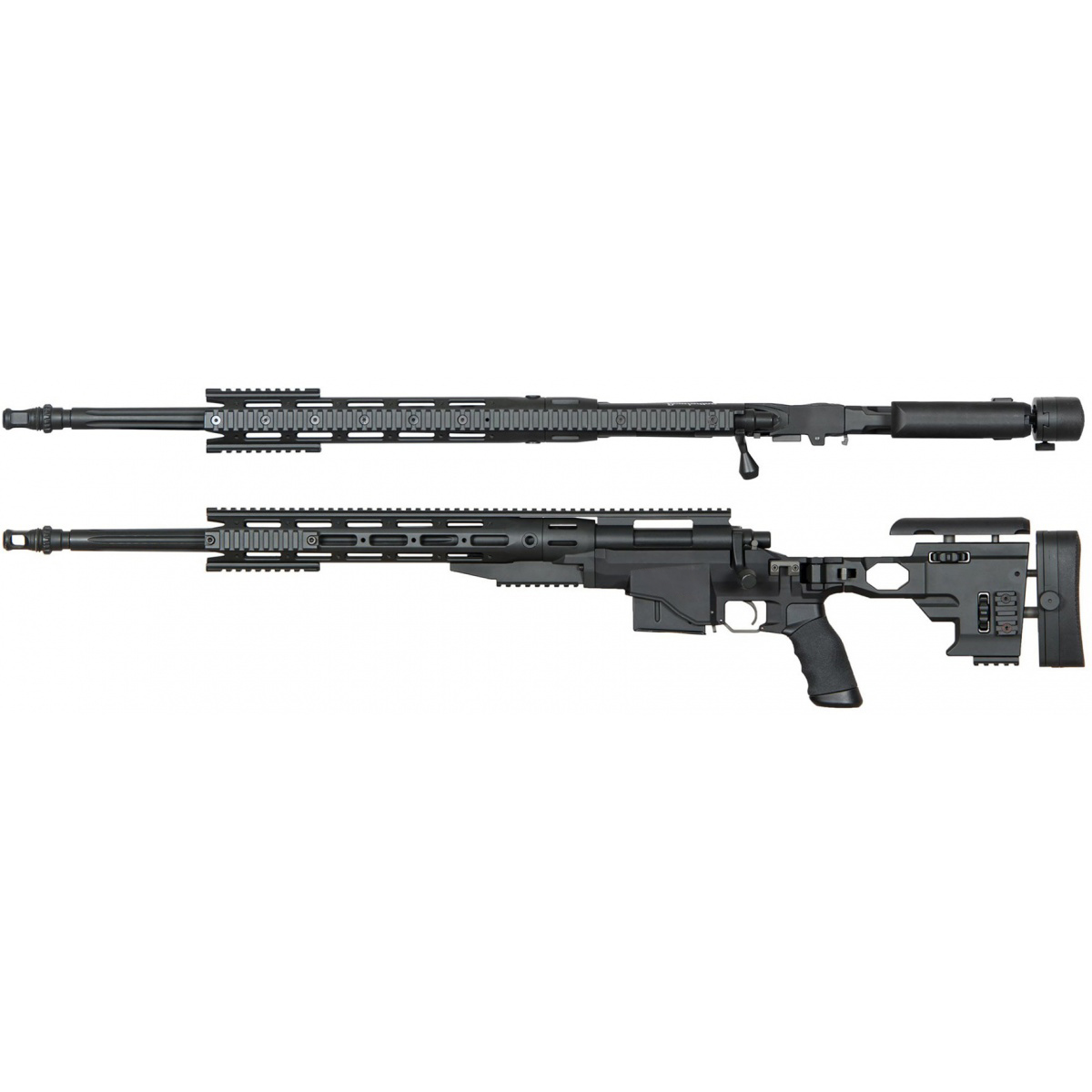 The ARES MSR700 Bolt Action Airsoft Sniper Rifle replicates its .338 counterpart from top to bottom. The receivers are constructed with CNC die cast aluminum material for durability. Attach your personal laser accessories on the 545mm picatinny rail system. The handguard itself is built with eight sides of mounting surface that holds all your attachments in secure fashion. So don't worry about any strings falling off of this baby. The durability features also include a metal outer barrel and a 20mm monolithic upper rail.