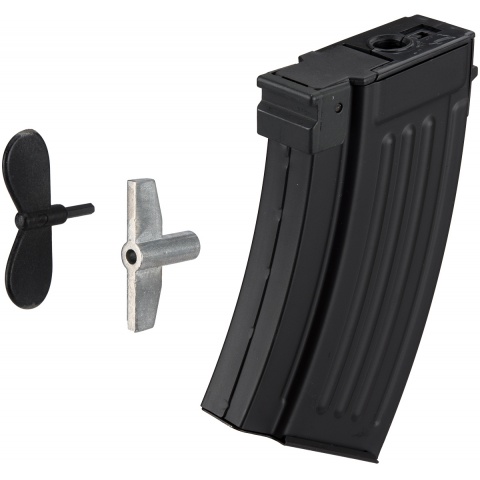 Ammo type: Seamless 0.20g or heavier (0.23g, 0.25g, 0.26g, 0.28g, etc) BBs. For maximum performance and accuracy, Airsoft Megastore recommends GoldenBall ProSlick BBs which carry perfect spherical consistency and density, available at Airsoft Megastore for the lowest price on the market, guaranteed.