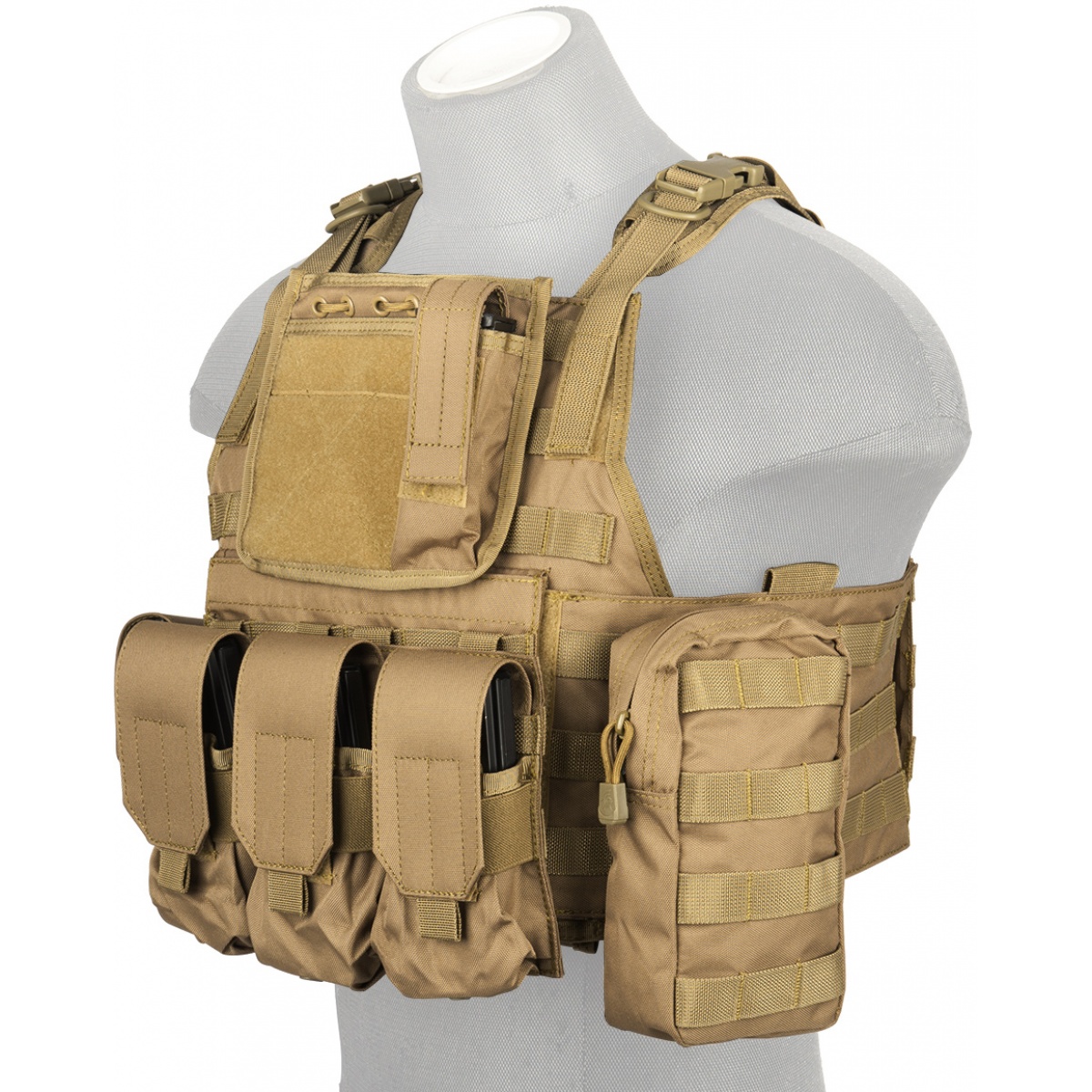 Lancer Tactical 1000D Nylon Tactical Assault Plate Carrier - TAN