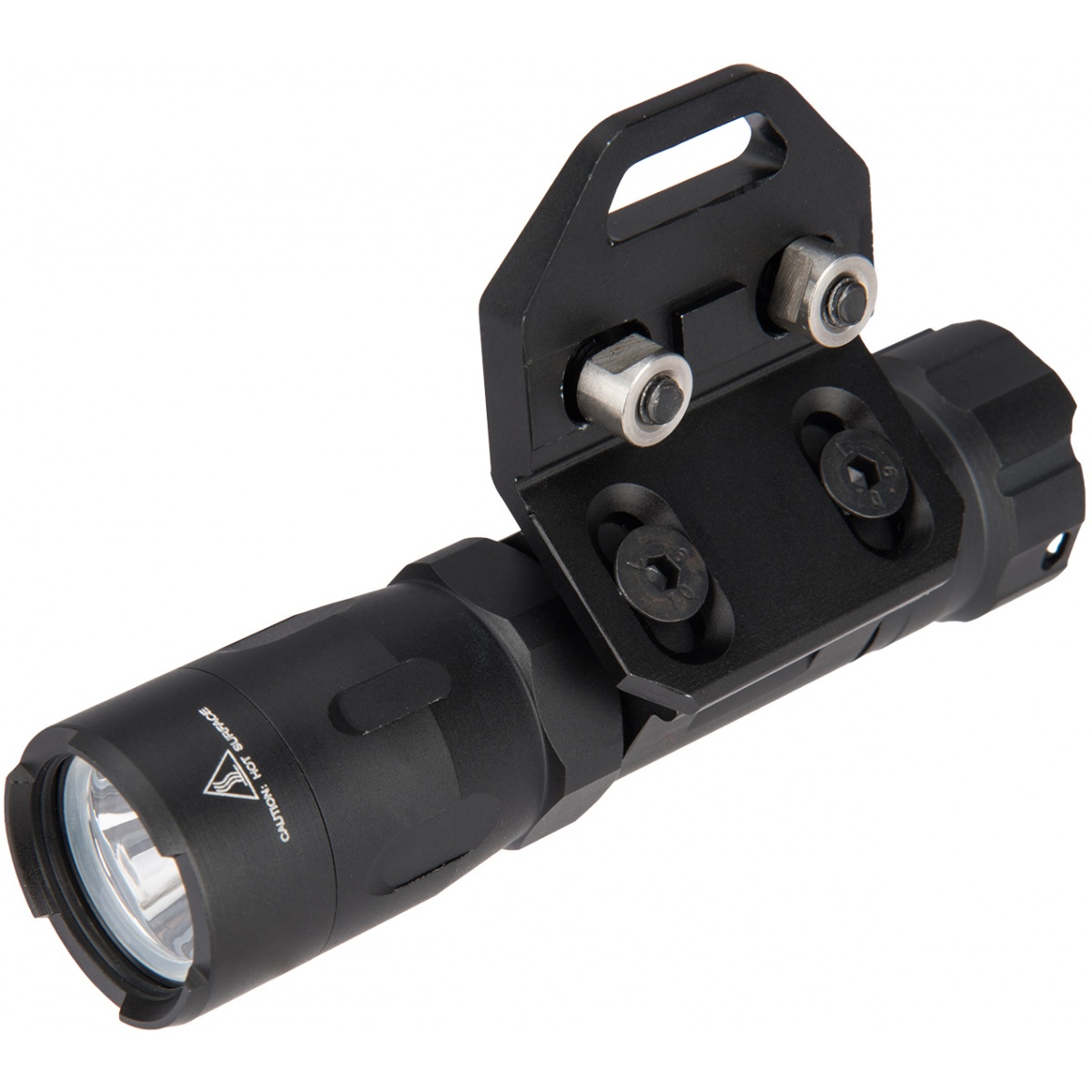A heavy duty tactical durable weapon light developed by OPSMEN, this flashlight is composed of tough stainless steel to ensure complete quality and reliability. This powerful light features an output of 800-Lumens to provide a full field of view in the lowest of light conditions or settings. Easily mountable, this weapon light quickly can simply latches onto your tactical keymod rail system.While placed onto your rifle's rail, the included integrated tactical rear tail-switch and remote design enables rapid on/off operation.