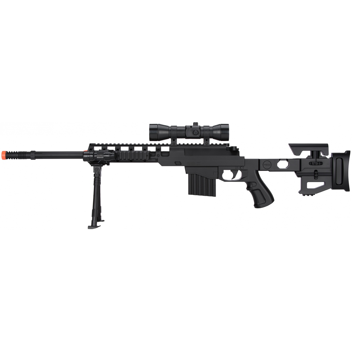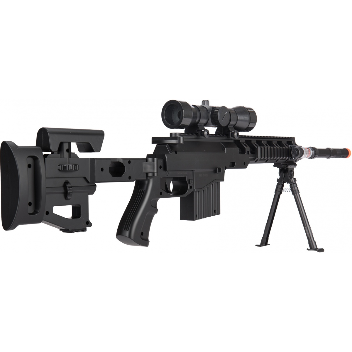 | Package Includes | 1X Rifle, 1X Laser, 1X Flashlight, 1X Bipod, 1X Mock Scope |