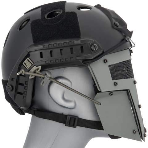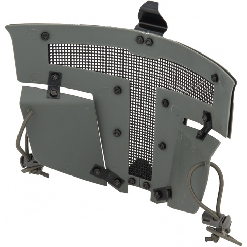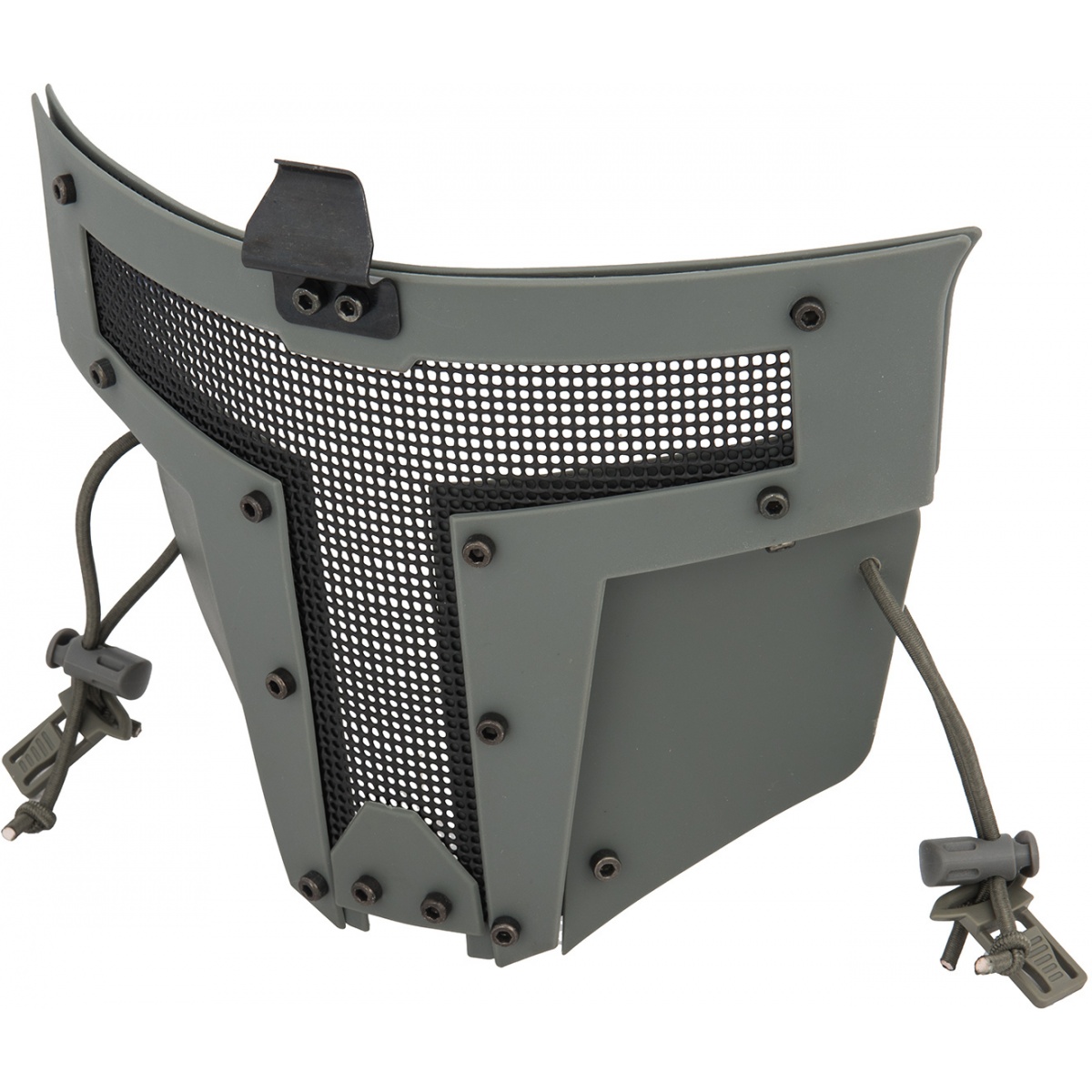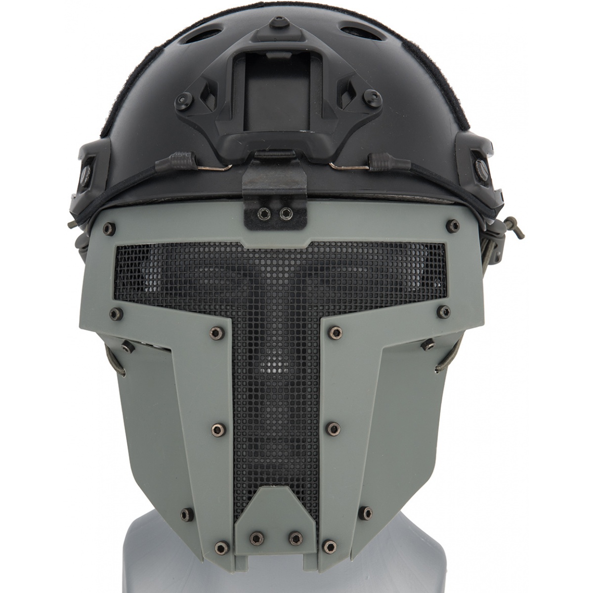Rush into the battlefield without fear of damage from BB fire with this highly protective, breathable full face mask from G-Force! Constructed with a highly durable nylon polymer and assembled with metal mesh fencing around the mouth, nose and eye area, this T-shaped bounty hunter face mask is not only well ventilated, the mesh eliminates the need for large, clunky goggles on the field. The tough nylon polymer makes BB fire bounce right off! No need to worry about your goggles fogging up with this mask, and the unique shape of the full face mask provides a wider field of view while worn! The way this tough polymer mask snugly protects your face is by easily attaching to tactical helmets! Helmet shroud and rail clips ensure that your mask will not slip, fall, or sway while worn for maximum security! With a sweet design, adaptable polymer panels and a tough metal mesh to make vision and breathing as natural as possible, choosing a face mask specially made to attach to tactical helmets is a great choice for your loadout!