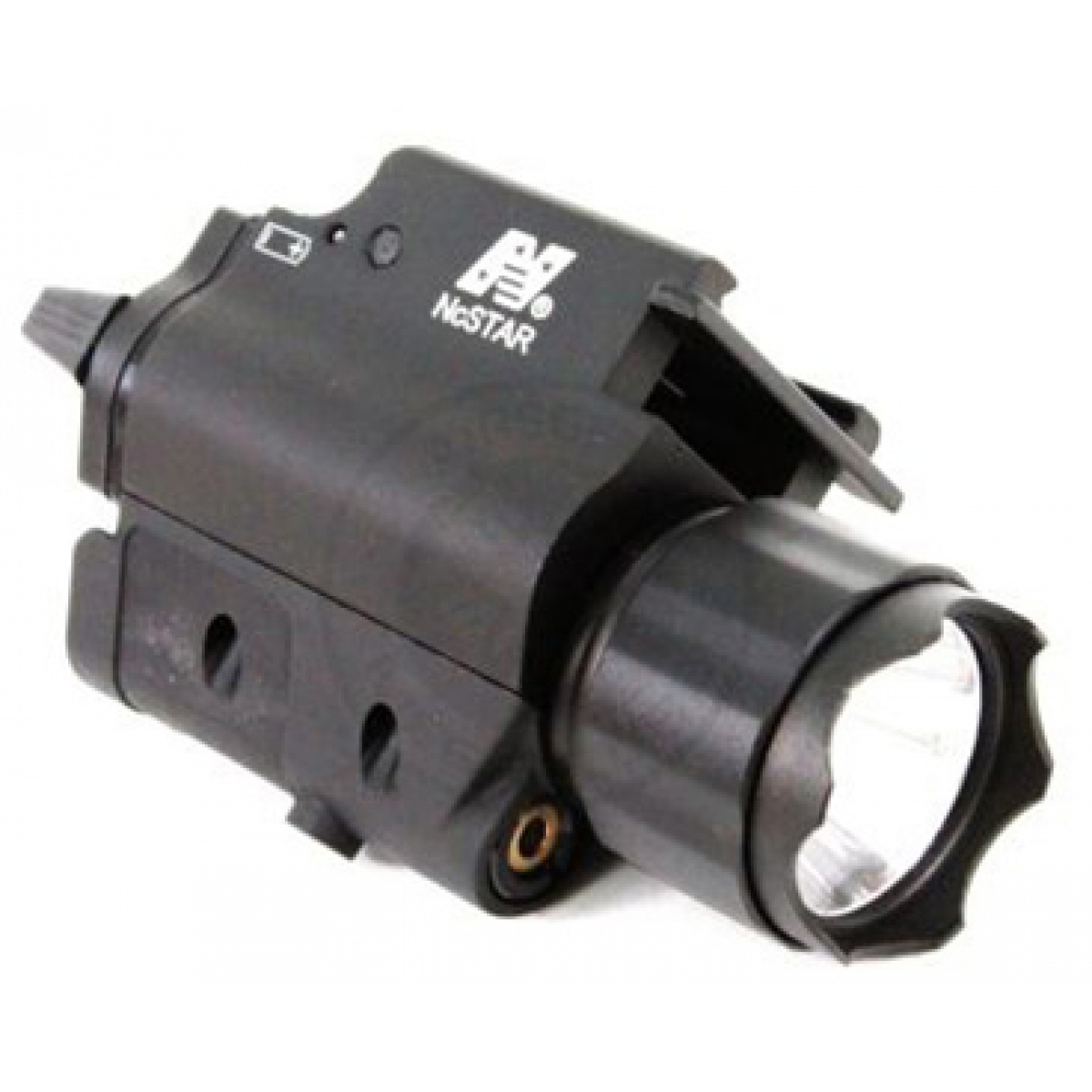 This NcStar Tactical 120 Lumen Flashlight/ Laser Combo w/ QD mount unit is one of the best performing all-in-one sighting/illumination units we sell. This unit is extremely easy to use and is completely ready to go out of the box! The NcStar Tactical Flashlight & Laser Combo Unit mounts easily to any 20mm Weaver Rail or Pistol Accessory Rail. This unit stands apart from other Flashlight/ Laser Combo units because of its integrated Laser, and incredibly compact size. The laser is highly visible and effective for target acquisition, and the flashlight is compact yet ultra bright to ensure visibility even in low-lighting scenarios.