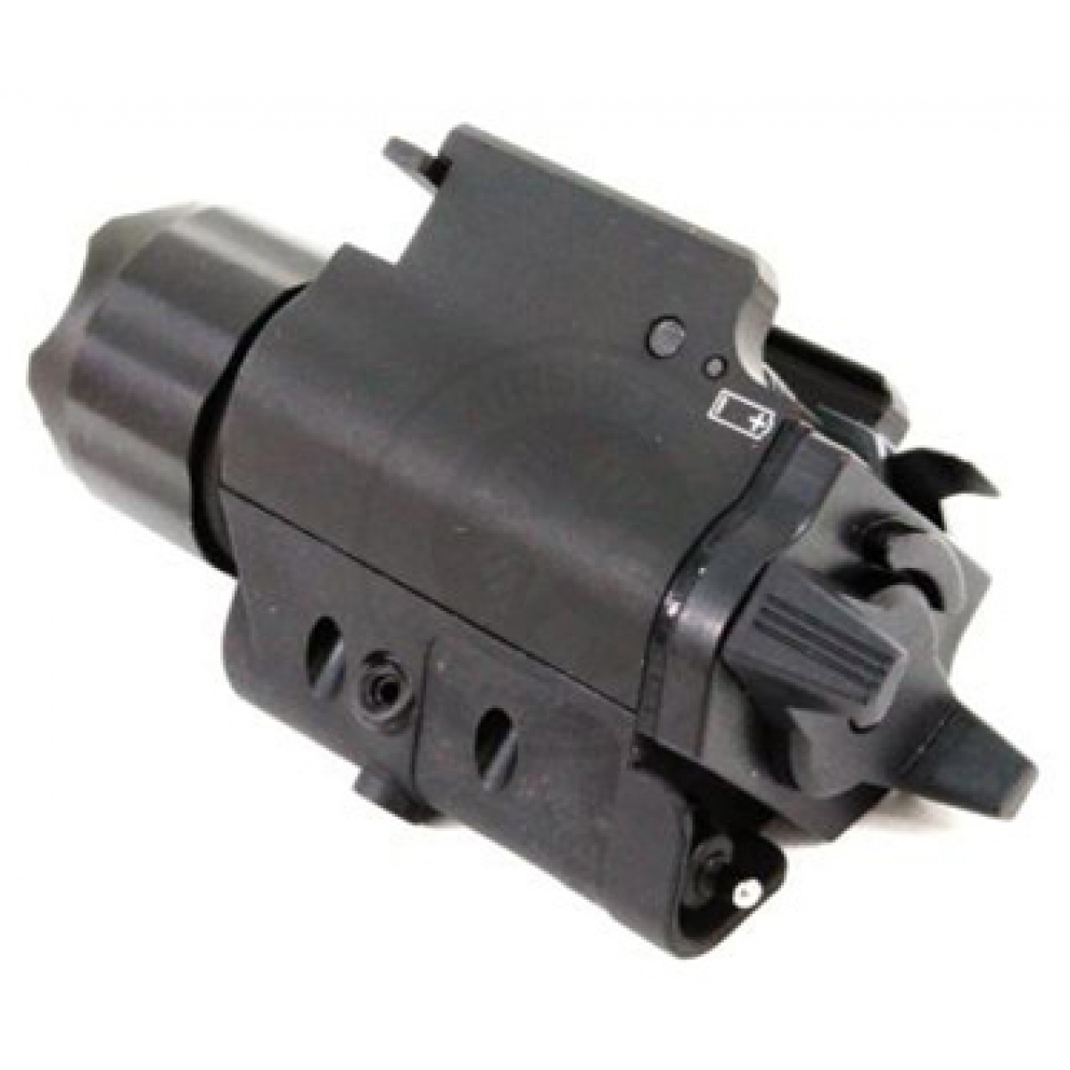 The Tactical Flashlight & Laser Combo Unit allows you to quickly switch back and forth from a Laser to a Flashlight with the push of a button.