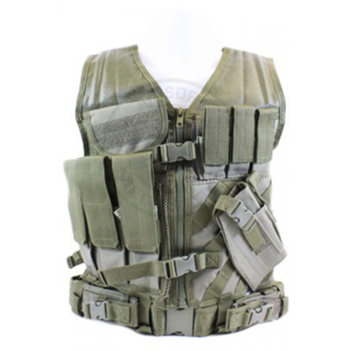 NcStar Military Cross Draw Tactical Vest w/ Holster - OD GREEN
