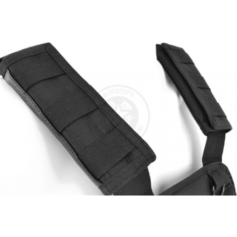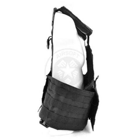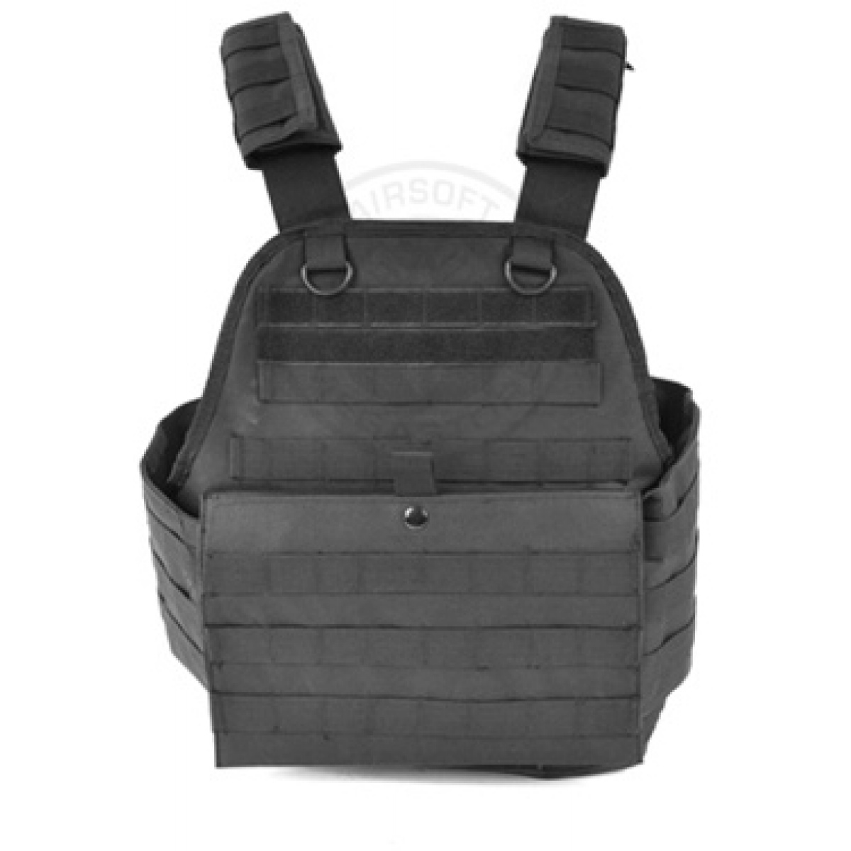 This plate carrier has heavy duty D rings in the front for mounting slings or other accessories, and on the rear is a super durable Drag Strap. The NcStar Tactical Plate Carrier can be fitted to any size with an adjustable cummerbund and adjustable shoulder straps. The shoulder straps come with removable shoulder padding as well as Heavy Duty quick release buckles. The plate carrier has two easy open areas for sliding in plates in the front and rear, and has inner pockets on each side for maximum protection. This is an all around great plate carrier that is lightweight, comfortable, and fully customizable. This is a must have for any serious airsoft player!