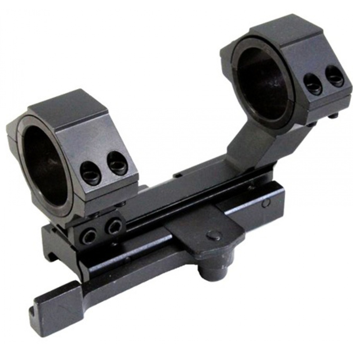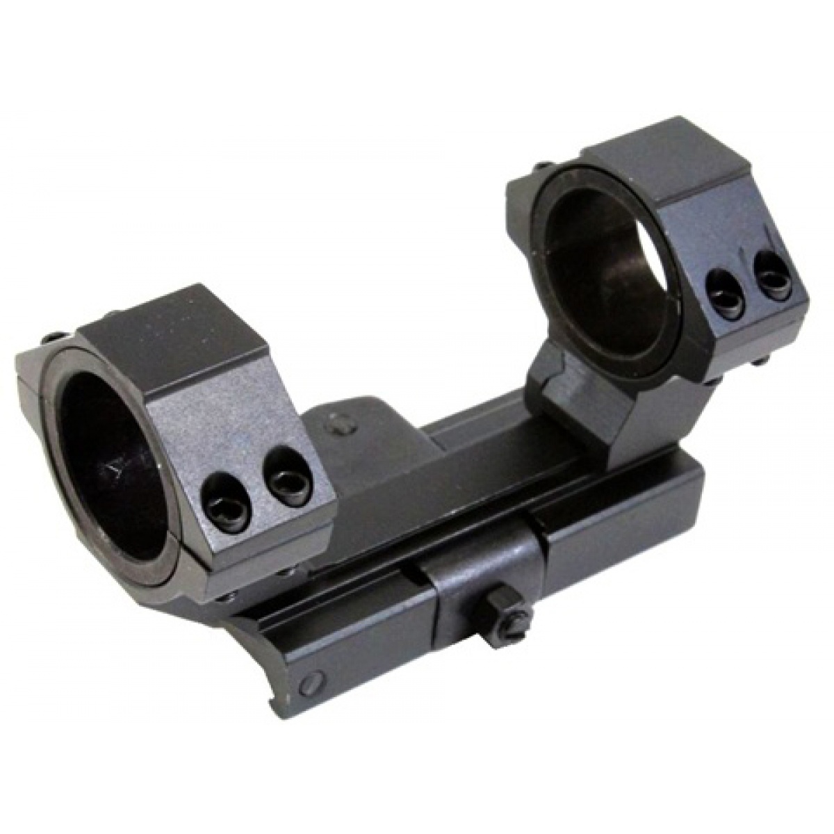 Designed for rifle scopes, this mount uses a cantilever mounting system w/ quick-release functionality to allow for fast and easy mounting/dismounting. Once the scope is secured into the rings (compatible with zooming/rifle scopes), this mount is designed for agility.