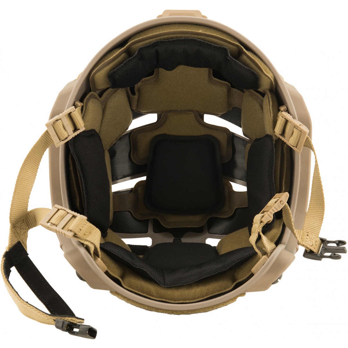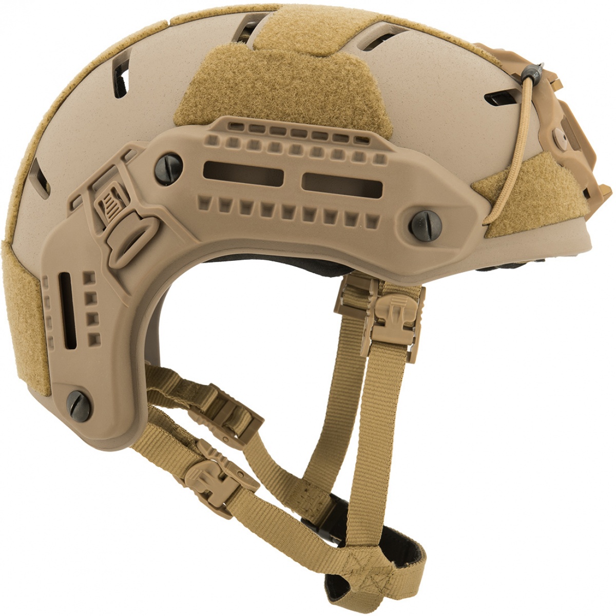 • Equipped with tactical side rails and a helmet shroud for NVGs and additional gear
