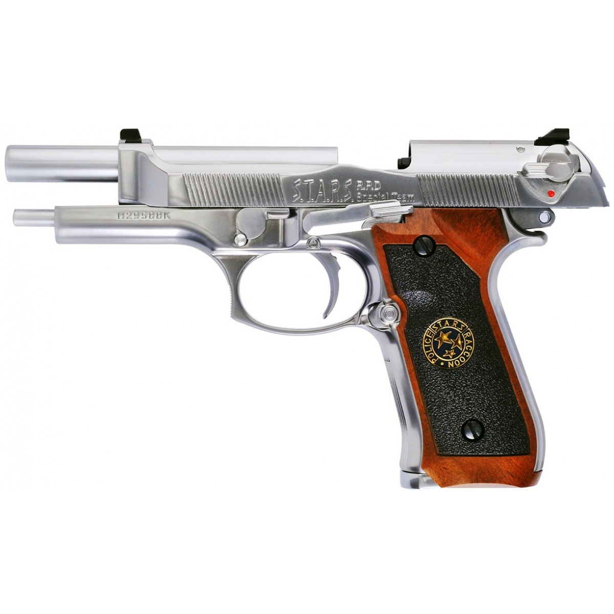 • Slide and pistol grip plates are etched with the legendary S.T.A.R.S. markings and logo