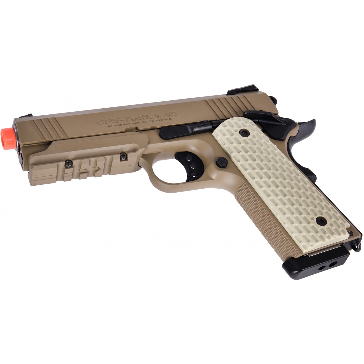 Introducing the Tokyo Marui Desert Warrior 4.3 Gas Blowback Airsoft Pistol - DESERT, now available on Airsoft Megastore! Engineered with high-strength polymer, this pistol offers a perfect balance of lightweight durability. Its tactical grips provide a superior and stylish hold, ensuring optimal control during intense battles. The lower Picatinny rails allow for easy customization, accommodating optics and flashlights. With authentic slide engraving, adjustable rear sights, and a commander-style hammer, this replica delivers an unparalleled shooting experience. Plus, its field-stripping capability mirrors the real steel version, enhancing authenticity. Don't miss your chance to dominate the field with this remarkable airsoft pistol. Order now and experience the power of Tokyo Marui!