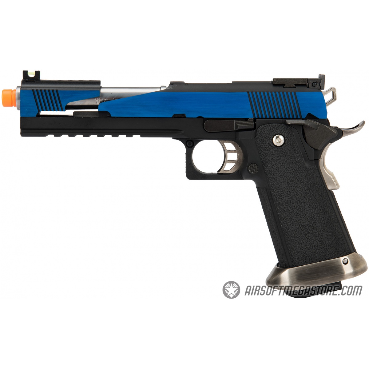 WE Tech 1911 Hi-Capa T-Rex Competition Gas Blowback Airsoft Pistol w/ Top Ports - BLUE / SILVER