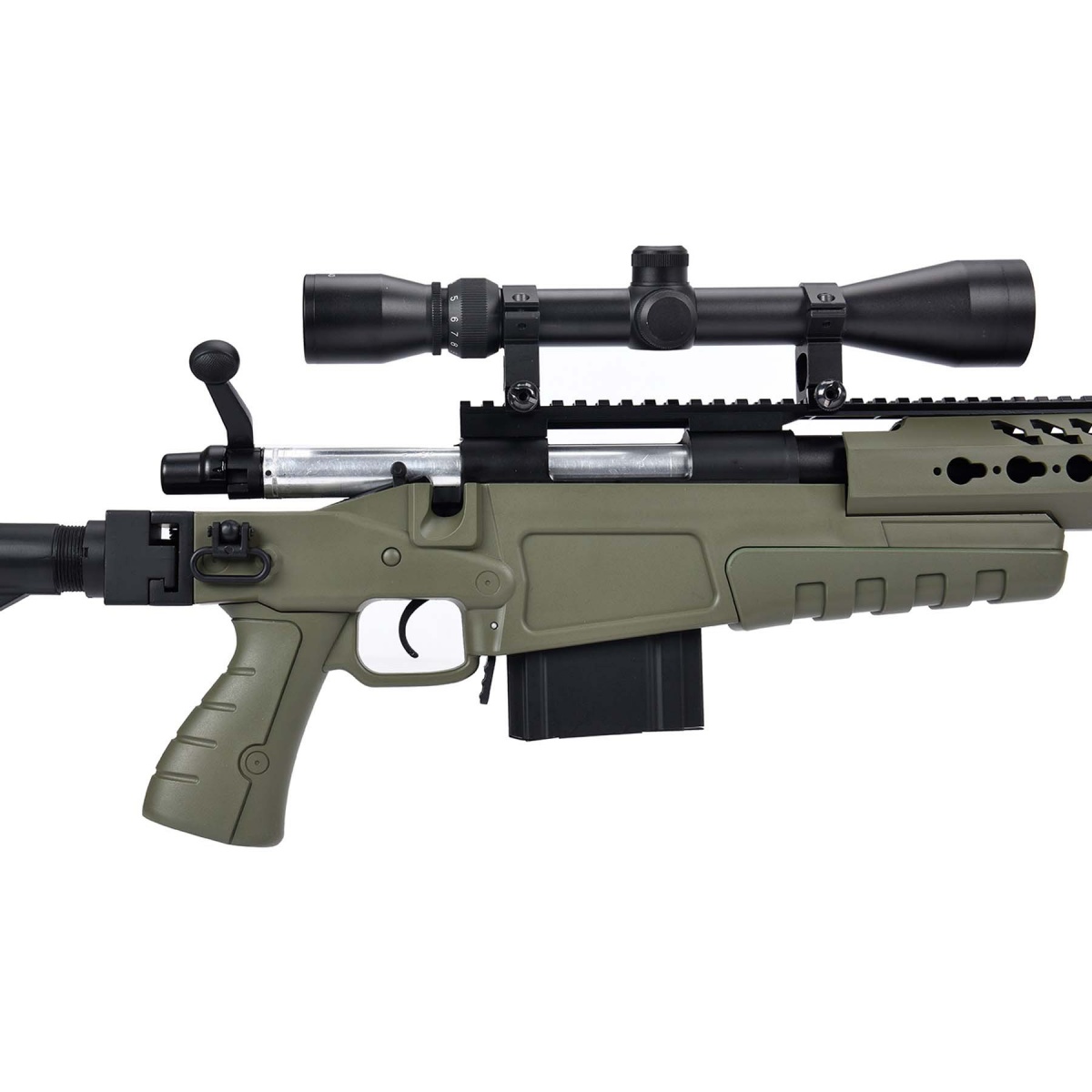 WellFire MB4418-1 Bolt Action Airsoft Sniper Rifle w/ Scope - OD GREEN