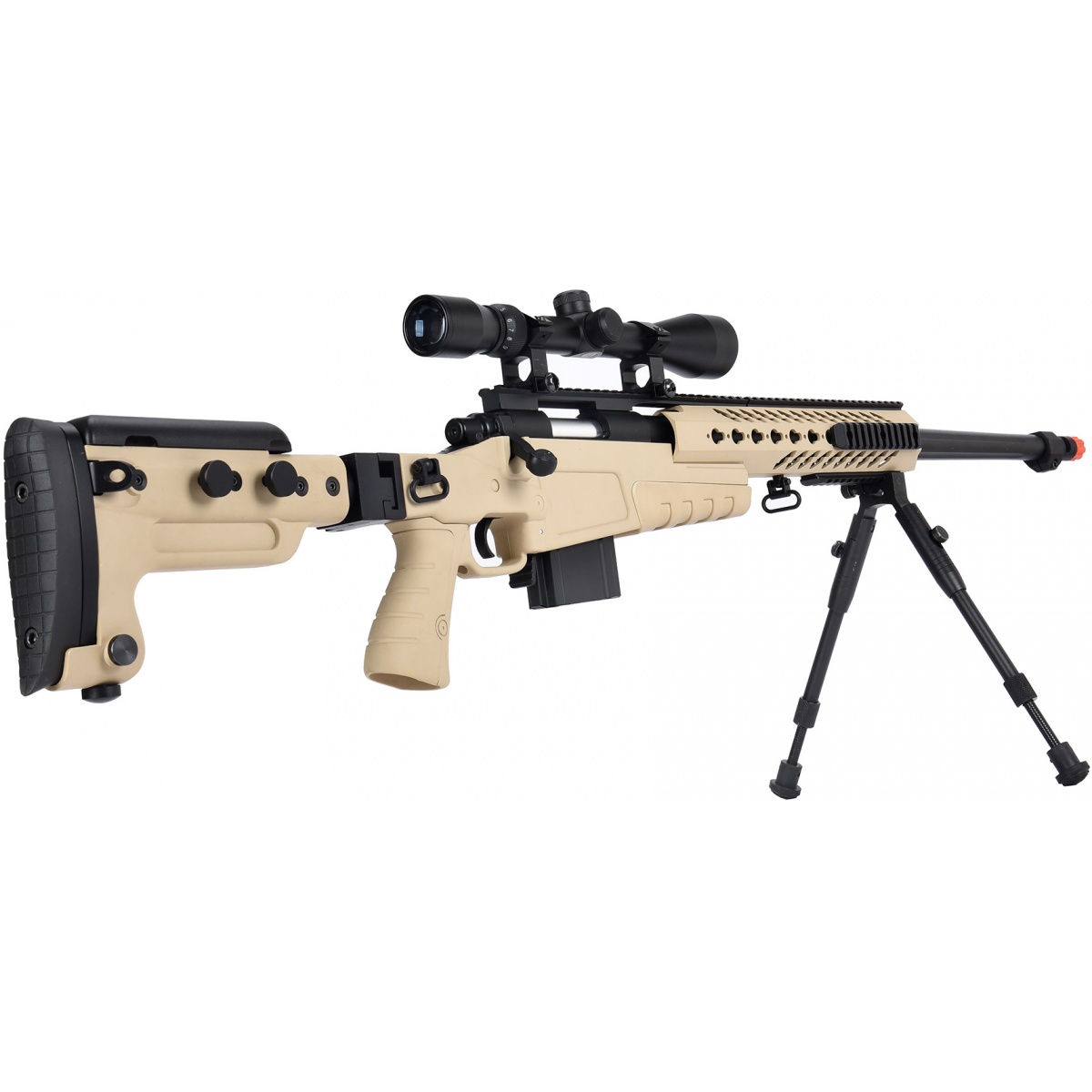 WellFire MB4418-3 Bolt Action Airsoft Sniper Rifle w/ Scope & Bipod - TAN