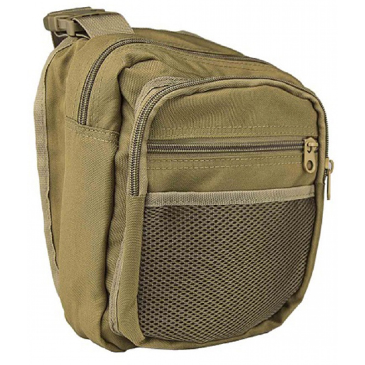 • An all purpose compact universal pouch with an adjustable strap, zippered compartments and a mesh pocket