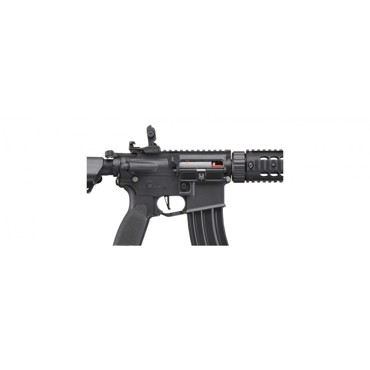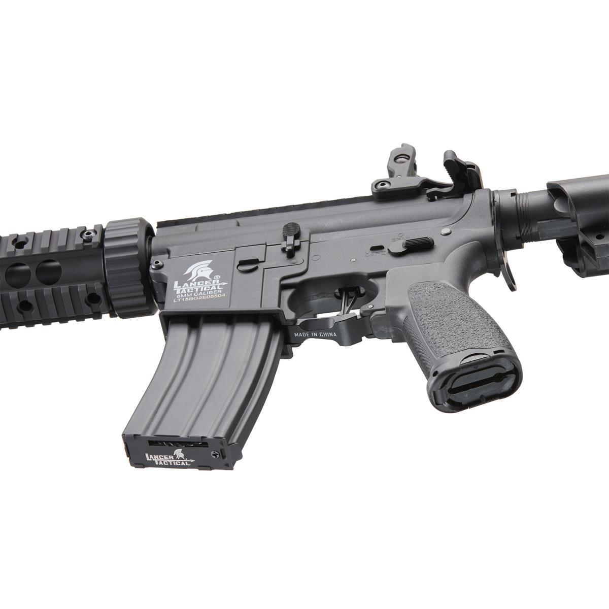 The Hybrid Difference: The Lancer Tactical Hybrid Series sports the same ProLine internals but with a key difference. Instead of a full metal body, Hybrid AEGs come with nylon polymer upper and lower receivers, making your rifle lightweight yet solid. And unlike the Lancer Tactical G2 rifles, the Hybrid series AEGs feature a full metal railed handguard. If you want the best of both worlds, Hybrid is the way to go. The 6.03mm stock tightbore barrel further increases range and FPS, and an injected polymer rotary style hop-up adjusts BB spin effortlessly for maximum precision. Upgraded with an 18:1 reinforced steel gear set to provide a quicker cycling rate and 8mm bushings to enhance the operational smoothness of your gears. These upgraded internals increase shot to shot consistency with minimal wear to your internals. The powerful 25k high torque motor is regulated to maximum efficiency with low resistance copper wiring and a bonus battery protection feature! When low voltage is detected from a drained battery, an automatic cut off keeps equipped batteries from draining completely, vastly increasing battery life and longevity. Replace your springs and alter your FPS without opening up your gearbox! A true quick change spring system enables adjustment from CQB to outdoor and back through unlocking the mechanism secured inside the buffer tube.