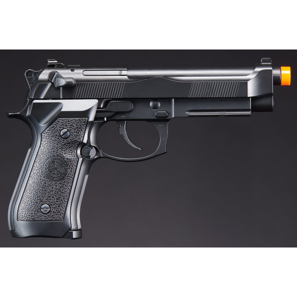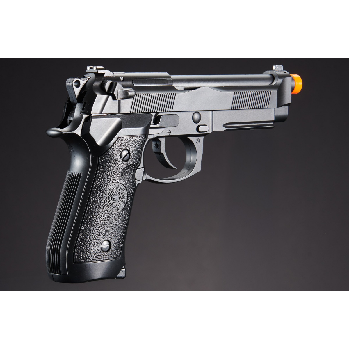 The HFC M9 Gas Blowback Semi/Full-Auto Airsoft Pistol features a full plastic construction. This full-scale replica comes with a accessory rail that lets you mount flash lights and/or lasers. Need an M9 GBB pistol for just about half the price other M9s? The HFC M9 Gas Blowback Pistol is the pistol to get hands down.