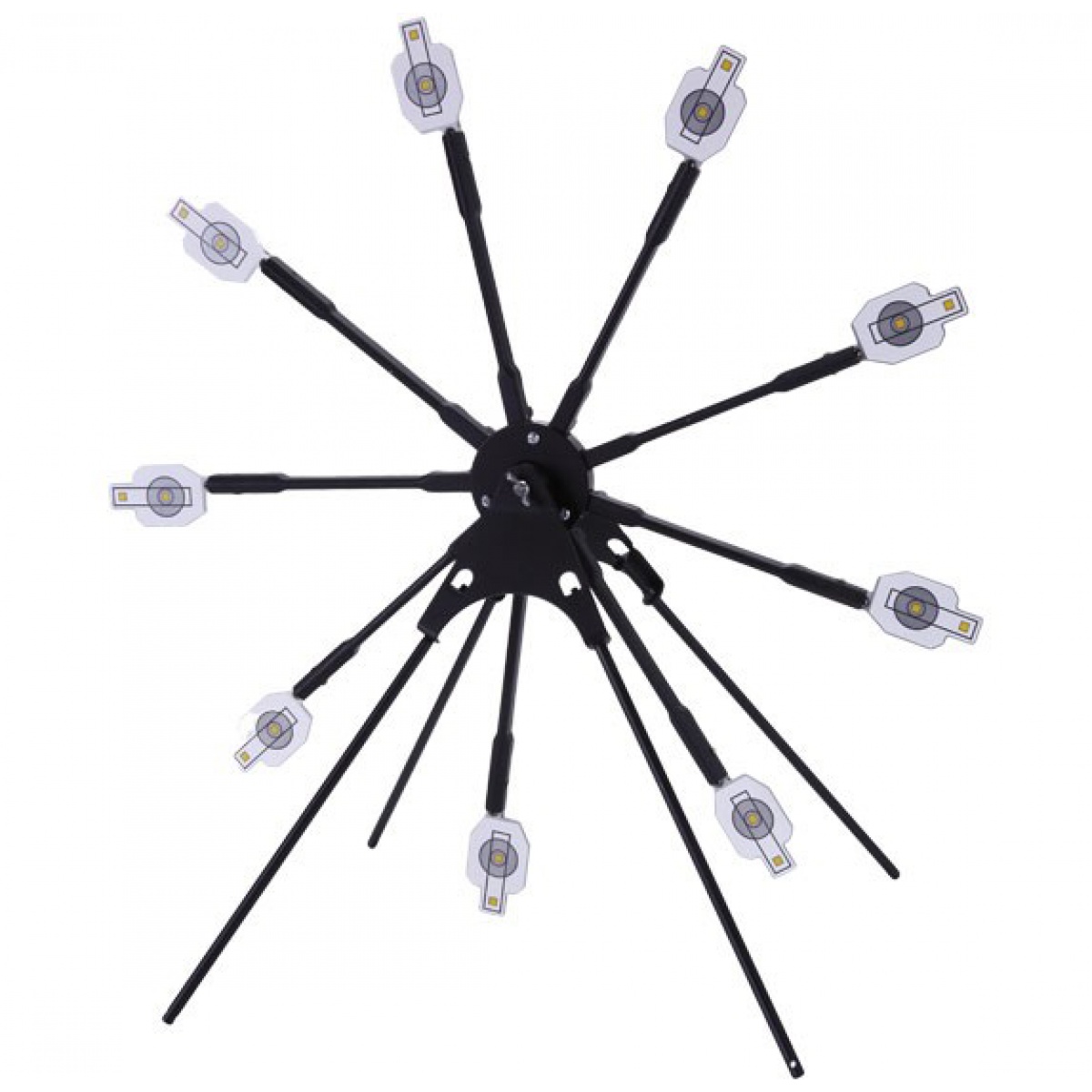 Nine center mass targets spin around one central axis. As you hit each one the wheel may speed up, slow down, or even reverse direction. Includes five sets of replacement target stickers.