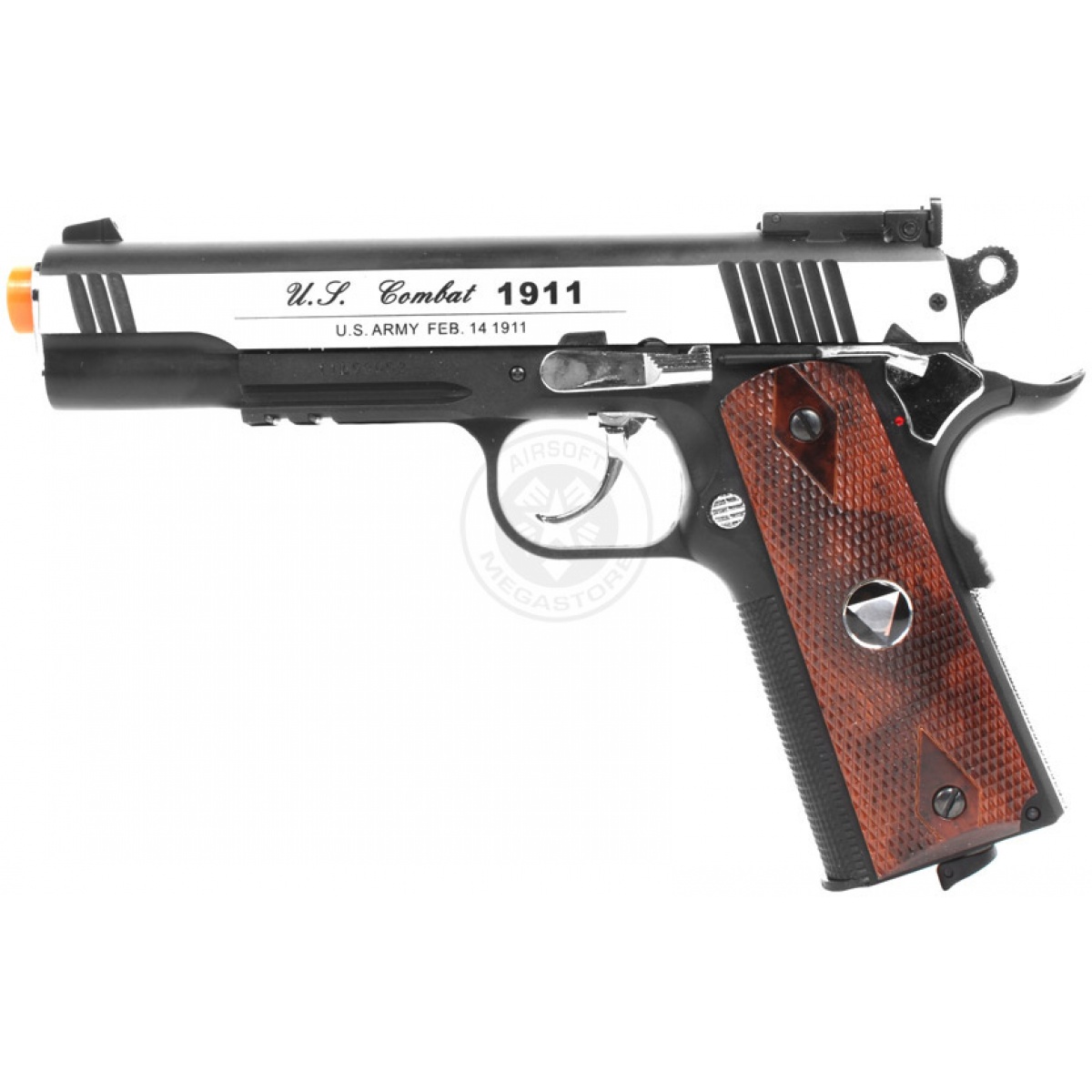 The pistol is not only powerful but is also built with durability in mind with a full metal slide and polymer rail frame to boot. With a heavyweight full metal/removable magazine, this pistol is well balanced. A grooved imitation wood grip rounds out the back of the pistol and provides shooting stability. This pistol features unique customized externals, with a black frame along with an all metal two tone slide which makes this sleek-looking gun very hard to pass up. The lightweight and durable polymer frame features a short tactical rail, perfect for mounting flashlights, lasers, and other accessories. It shoots as good as it looks and is bound to give you the best shot and a hard kick.