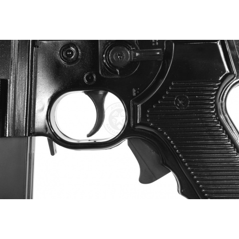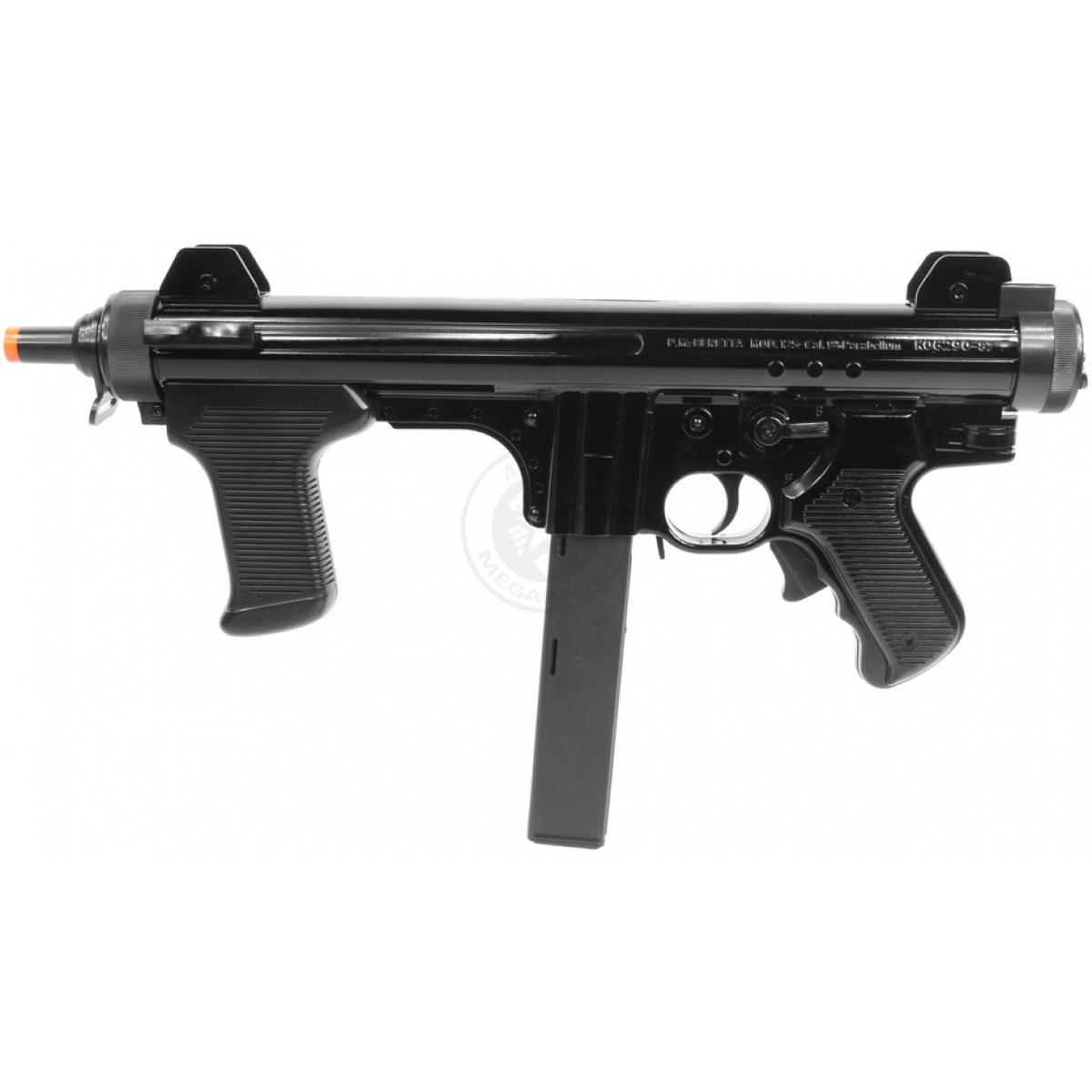 The Umarex Fully Licensed Beretta PM12S Airsoft Spring Pistol is an accurate 1:1 scale replica of Beretta's iconic 1960's era sub-machine gun. With a track record dating back to the 1950s, the Beretta PM12S sub-machine gun was the gun of choice for many military and law enforcement agencies. With a compact and lightweight design, this sub-machine gun was perfect for rapid deployment in close quarters combat situations! This Umarex spring airsoft replica of the Beretta PM12S is made from lightweight and durable ABS plastic with an ejecting magazine and a solid front grip, which is used to load a new round into the chamber and cock the spring of the airsoft gun.