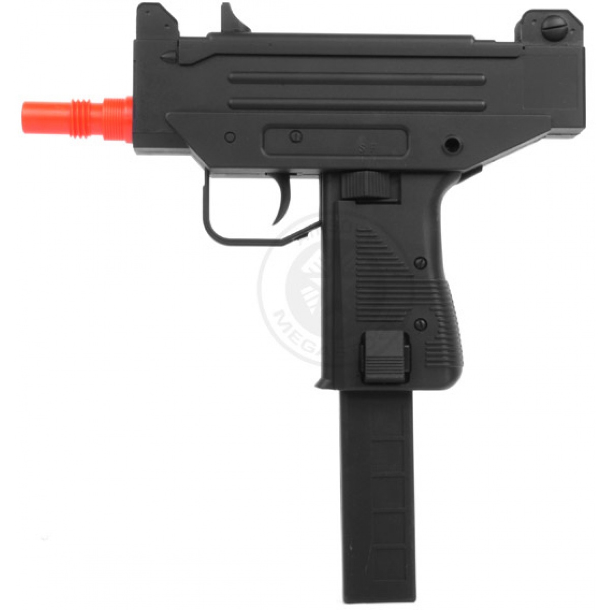 The WellFire Micro UZI SMG is a lightweight and compact fully automatic electric airsoft pistol, perfect for target shooting in the backyard or playing close quarters airsoft games. This fully automatic airsoft machine pistol is a replica of the notorious Micro Uzi, known for being lightweight and concealable. a unique feature of this airsoft Micro Uzi AEG is its detachable magazine, which houses the rechargeable battery. This starter Micro Uzi AEG package includes everything you need to use the gun right out of the box, including a wall charger and a small pack of BB's. It has enough power for a starter electric, and for its price, you are purchasing an automatic for what other airsoft retailers would sell a spring pistol. This is an AWESOME deal!