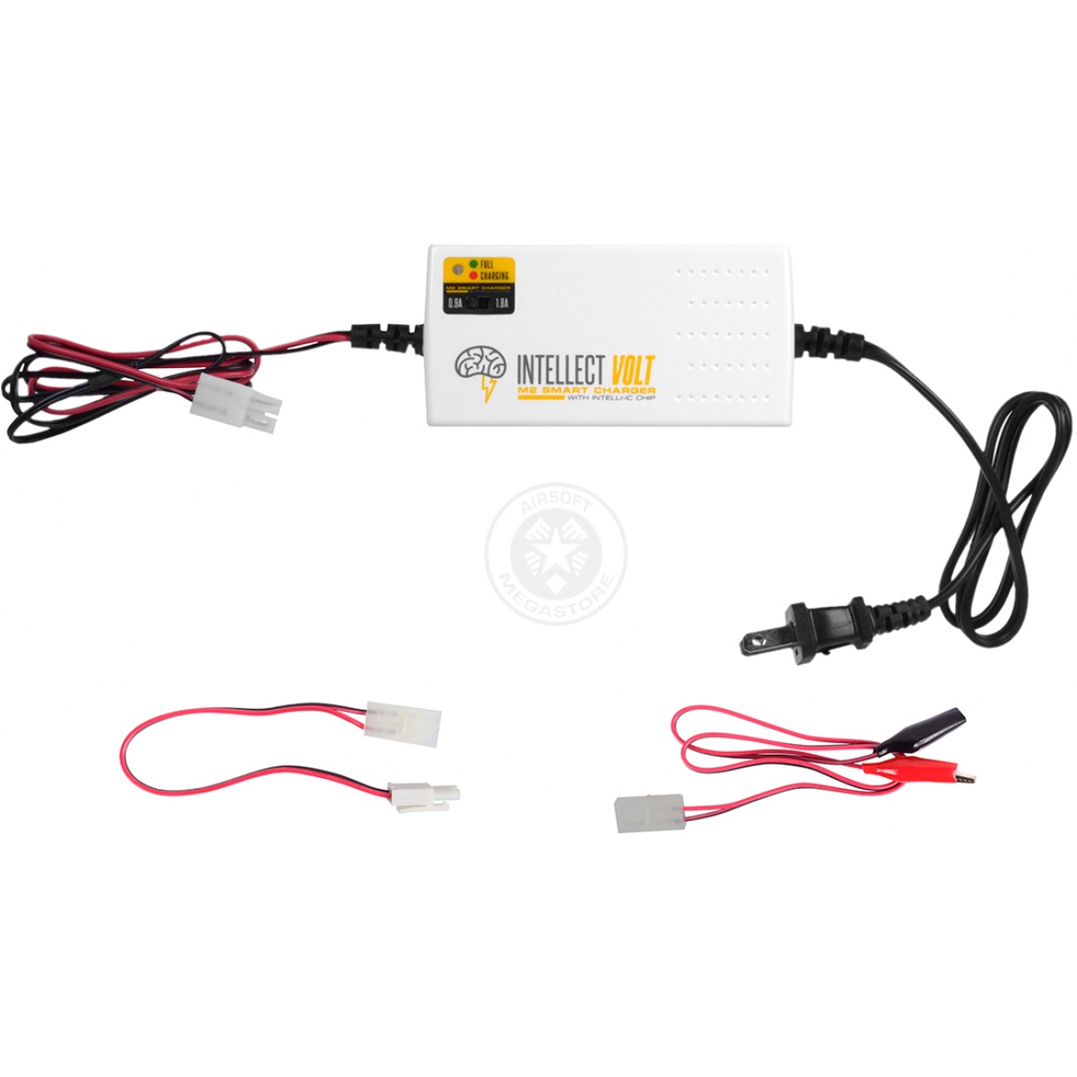The Intellect Volt M2 Airsoft Smart Charger is a MUST HAVE for any airsoft player with an AEG. This charger is extremely easy to use, and fully charges most airsoft batteries in less than an hour! This universal smart charger is perfect for charging NiMH or NiCD airsoft AEG batteries, and includes both large and small Tamiya connectors for charging various size batteries. Smart Chargers are highly recommended over standard wall chargers because they charge batteries at a faster constant rate, and they prevent overcharging which is common with cheap wall chargers. With two current settings, you can easily charge higher mAh (milliamps per hour) batteries in half of the time of a standard wall charger. Unlike standard wall chargers, which do not stop charging until after they have been unplugged, this smart charger uses a dynamic Intelli-IC chip to constantly monitor and control the charge going into your battery pack.