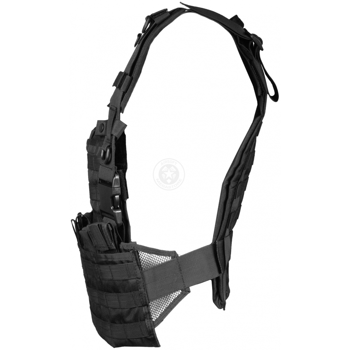 The NEW G-Force Warrior Chest Rig is a rugged combat vest that is constructed out of high-strength tactical nylon and comes integrated with six double-stacked magazine pouches, with MOLLE webbing on all surfaces. This high-speed rig, which is based on the style of vest used by the U.S. Army Special Forces, is perfect for intense airsoft skirmishes and can accept two standard plates (not included) in the front and rear. The heavy duty rig has ample space to attach MOLLE gear, including magazine, utility and dump pouches. In emergency scenarios, the integrated drag handle is extremely durable and is sewed to the vest with reinforced stitching, allowing you to securely drag “downed†teammates into cover. The quick release buckles located on the waist and shoulder straps act as points of release for quick-ditch situations, should the need arise. Additionally, this chest rig comes equipped with an admin storage pouch and padded shoulder straps that help reduce fatigue. Players who are seeking an affordable chest rig with a similar style (some can cost more than $100) with multiple magazine pouches and tons of space for MOLLE gear will find G-Force’s Warrior Chest Rig to be a perfect fit!